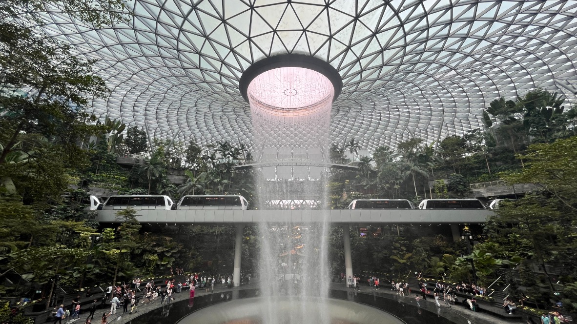 一落地新加坡樟宜机场,热带的湿热空气扑面而来,赶紧脱下大棉裤二棉袄,赶赴星耀樟宜的大瀑布打卡: