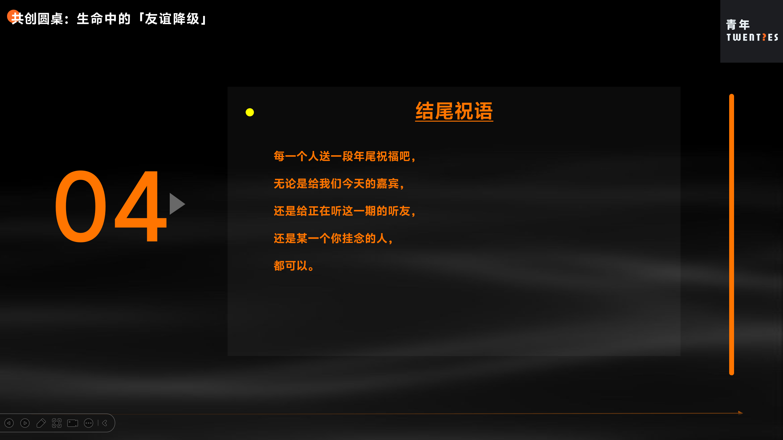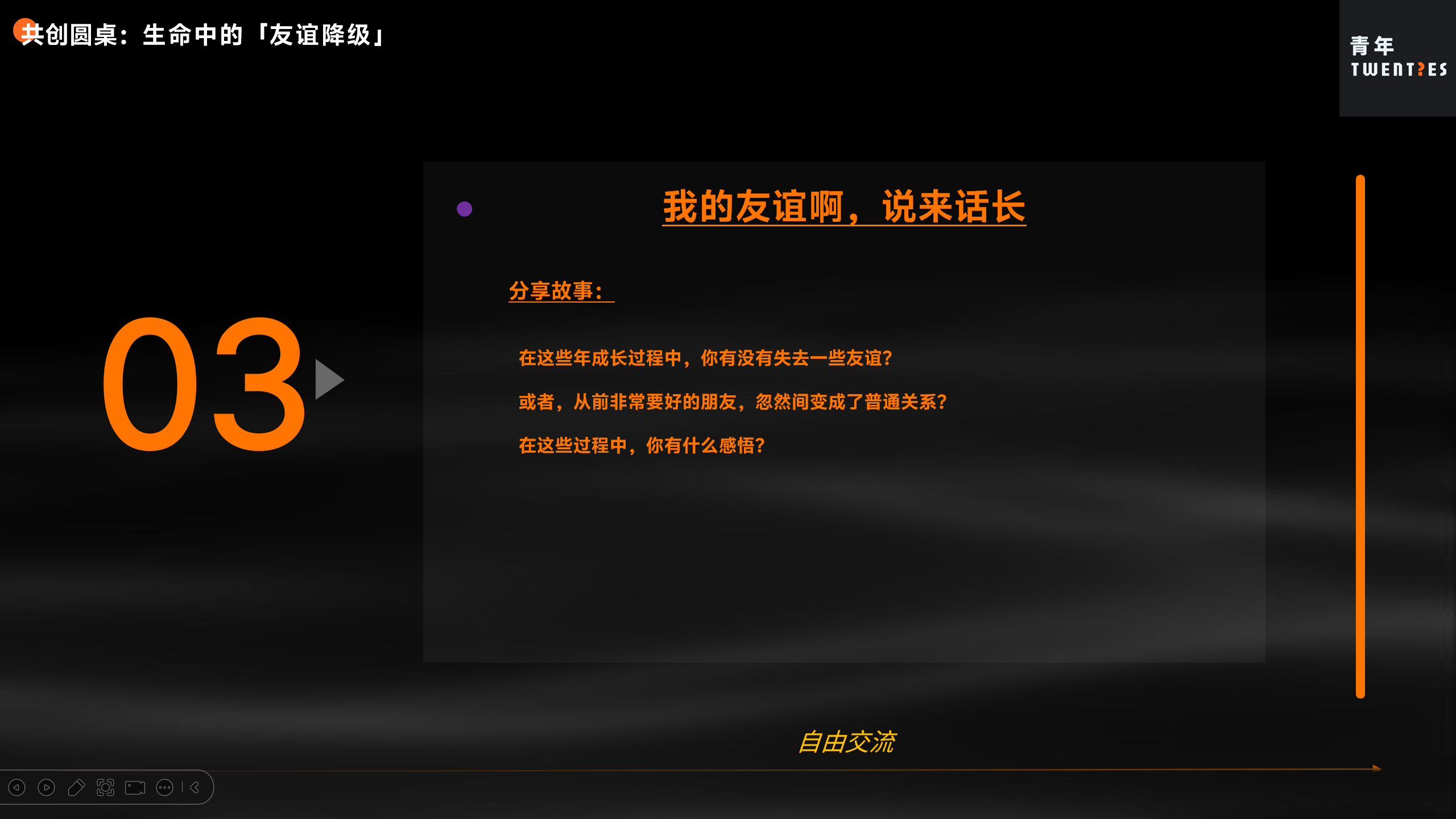Hello大家好,这一期是「二拾青年」第一次举办的线上圆桌,在冬至之夜,聊聊“成长过程中我们所获得和失去的友谊”。
