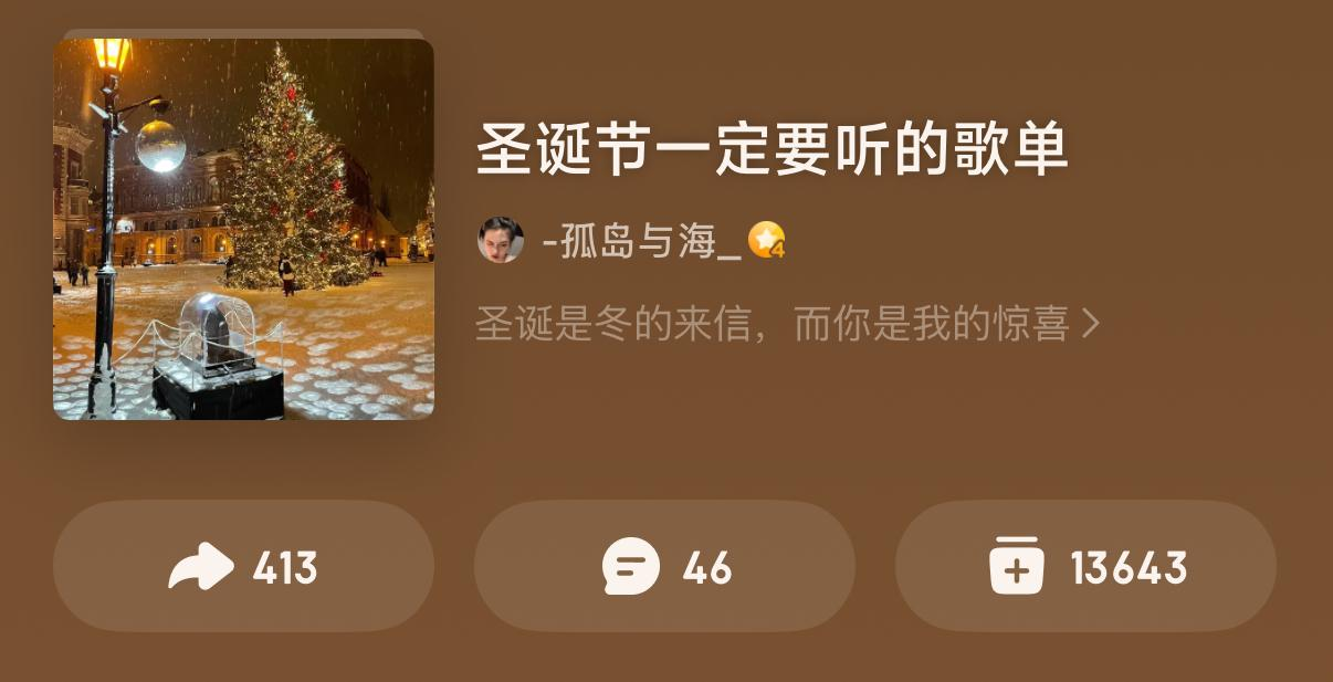 你在首页的搜索栏搜索“心意唱片”会触发一套自动程序,集合当天的9首歌曲,可以打包送人。比如我现在打包就是9首适合平安夜的音乐~