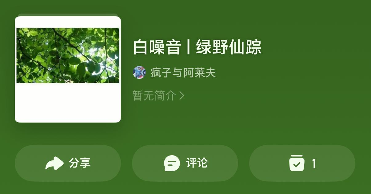 一份非常养眼的歌单!舒缓治愈,山谷里的鸟鸣,小溪,吉他声,太美了,音乐的存在感刚刚好,没有太喧宾夺主。总体来说也不能算是“噪音”,这也太好听了吧!