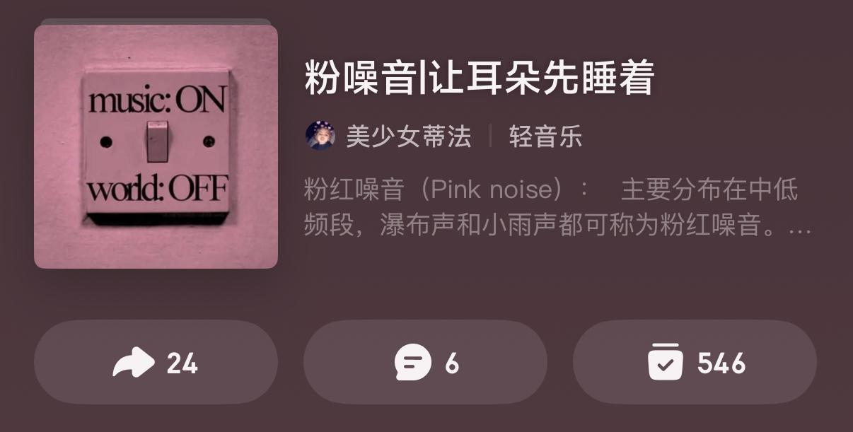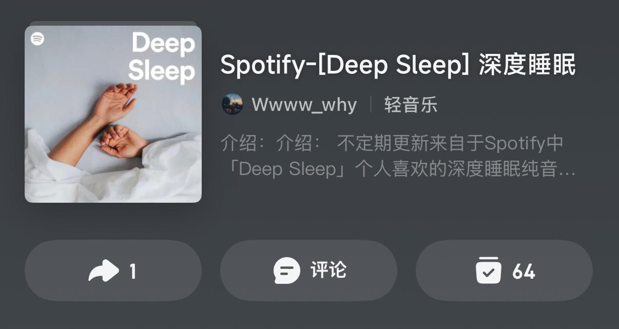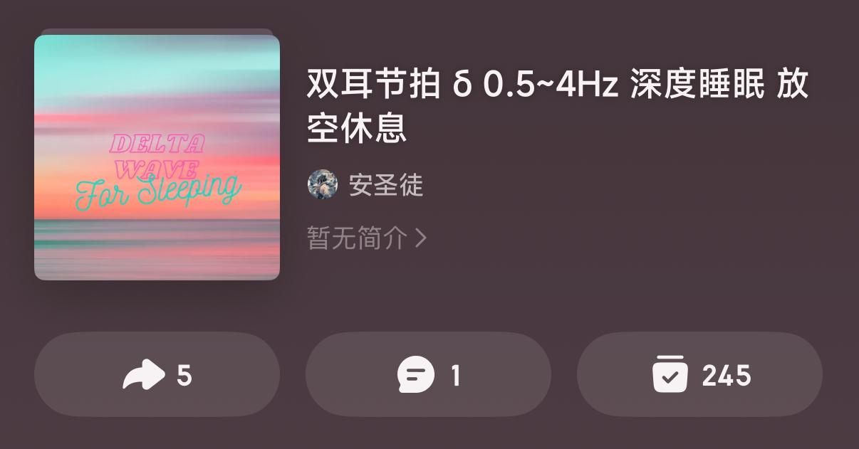 你也可以自建歌单,入睡时准备30-60分钟自己喜欢的音乐,然后用这张歌单反复填充8小时,在你整个睡眠时间里用双耳拍频促进深睡眠
