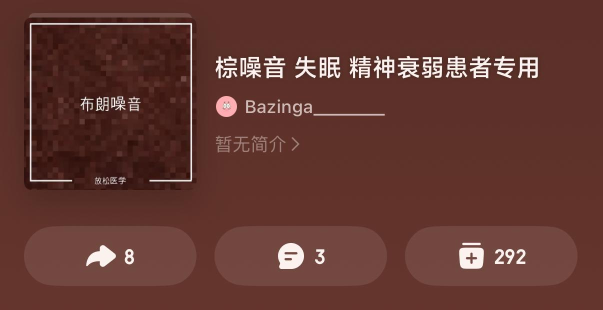 非常丝滑柔顺的噪音...嗯?有种巧克力的感觉,还是油脂丰富的那种??棕噪音甚至被称为声音界的巴比妥,真的可以试试看