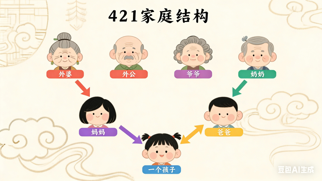 ■ 图 / Aloha 机器人在做虾仁滑蛋(图片来源于网络)■ 图 / 未来中国的「4 - 2 - 1」家庭结构