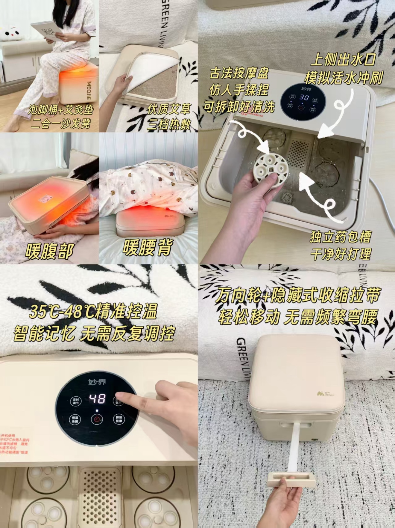 ▸ 一物两用:艾灸坐垫 + 恒温足浴,同步进行,省时省空间