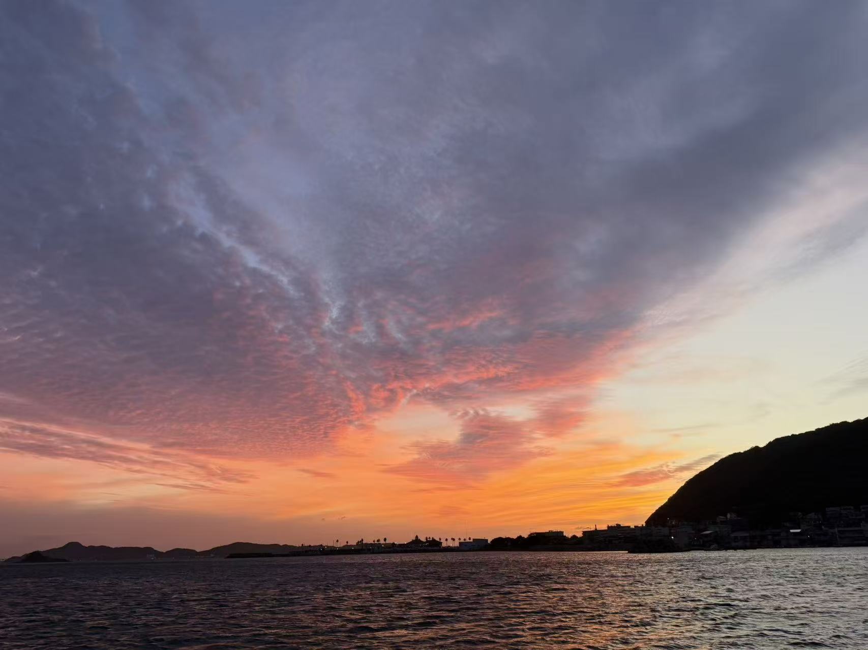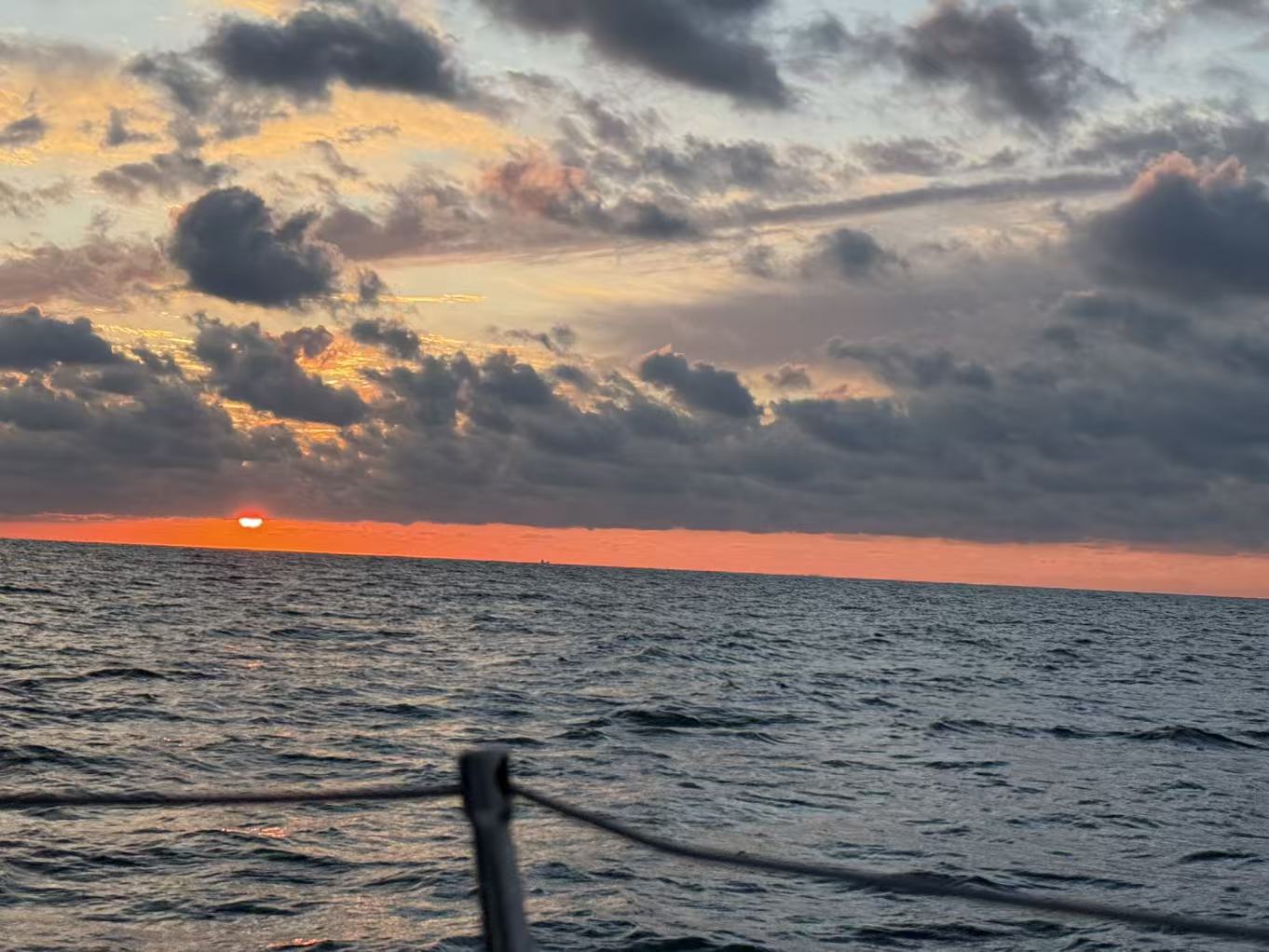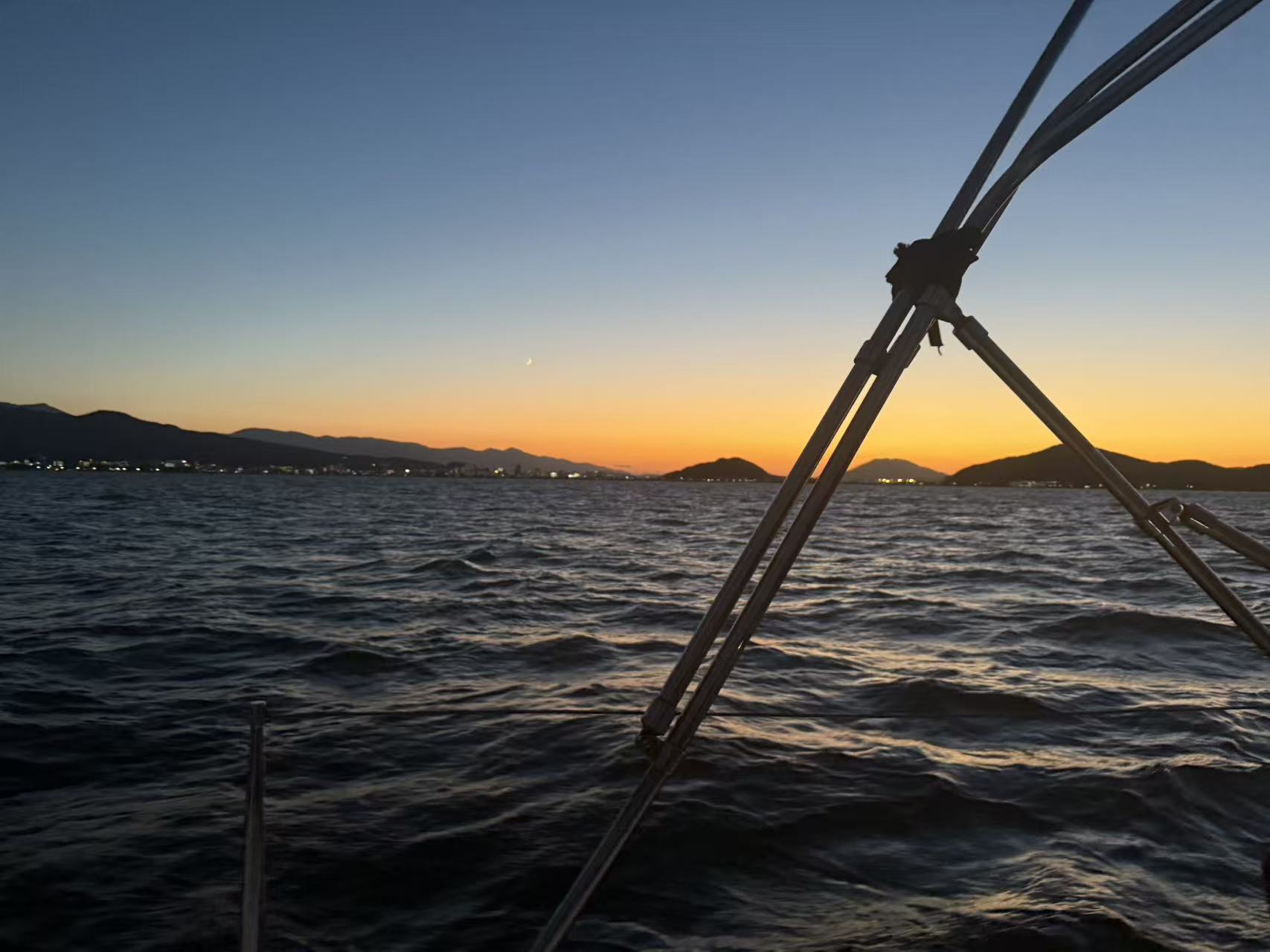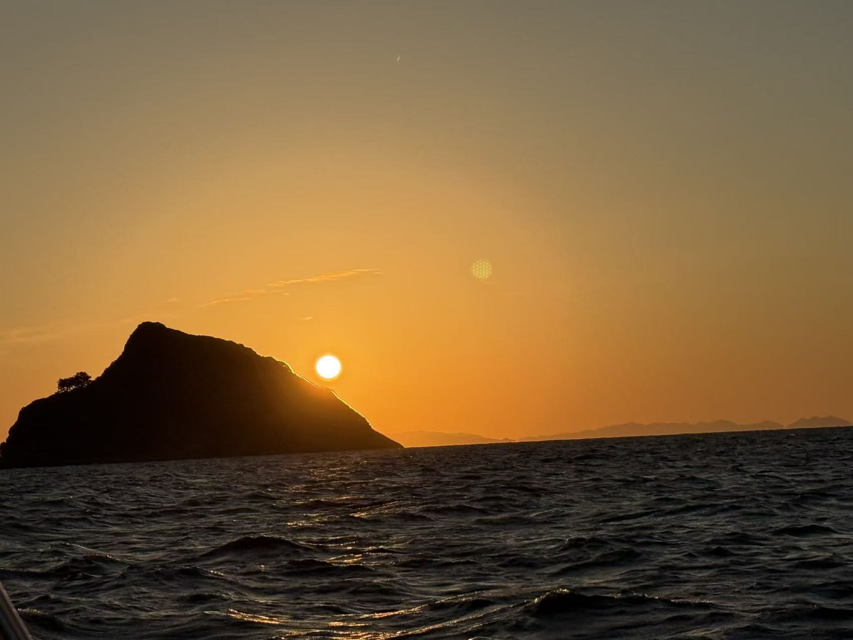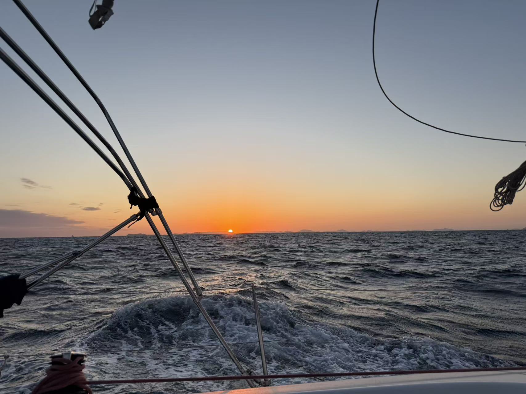 文末会附上本次的帆船航线图、海上的浪漫落日照、日本海上警卫队的连环电话“问候”、以及船长傅哥的视频账号。