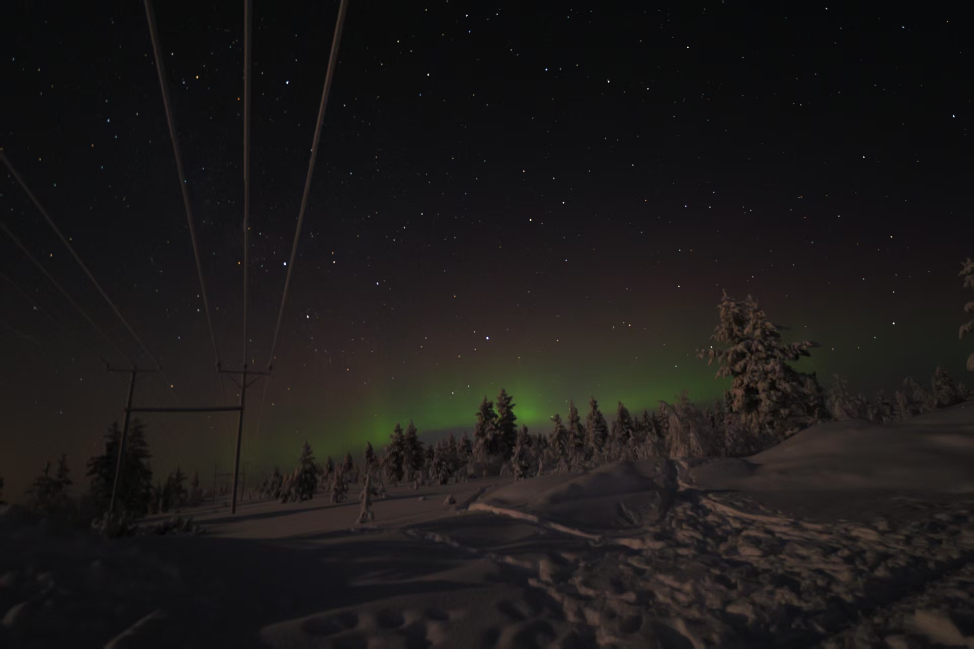 54:30 零下30度的夜晚出门追极光,运气虽然不够好,那几天极光活跃度很低,但最终还是看到了