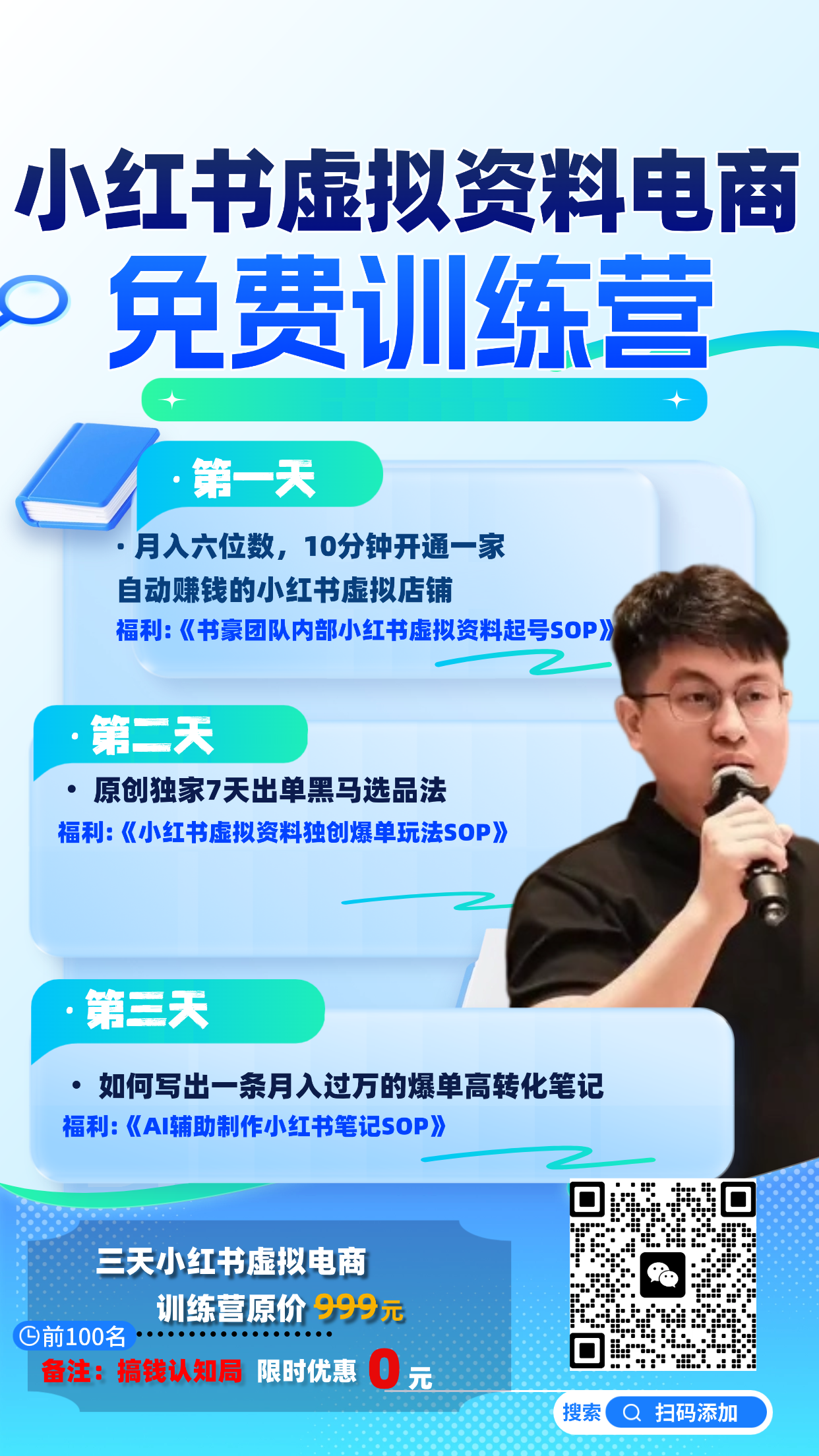 - 原价999元的 《3天小红书虚拟资料电商训练营》