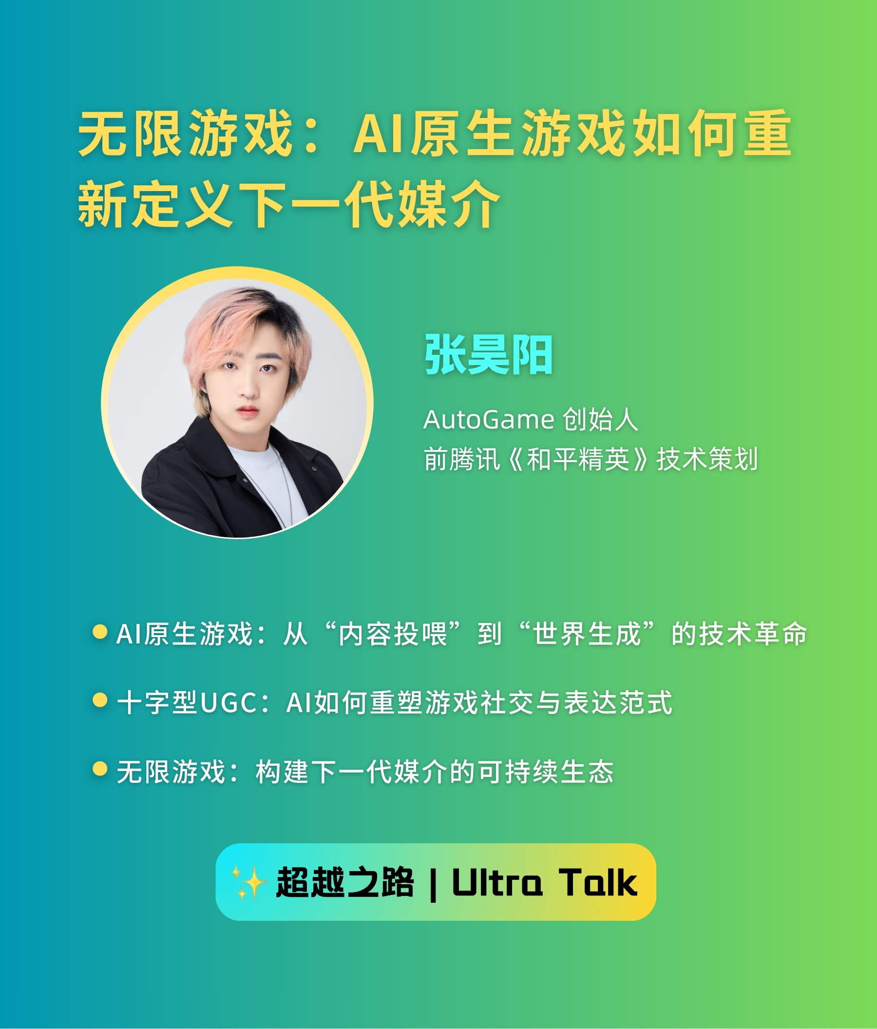 在本期交流中,我们围绕「无限游戏:AI原生游戏如何重新定义下一代媒介」与昊阳深入探讨了AI原生游戏:从“内容投喂”到“世界生成”的技术革命、 十字型UGC:AI如何重塑游戏社交与表达范式、无限游戏:构建下一代媒介的可持续生态 等话题。