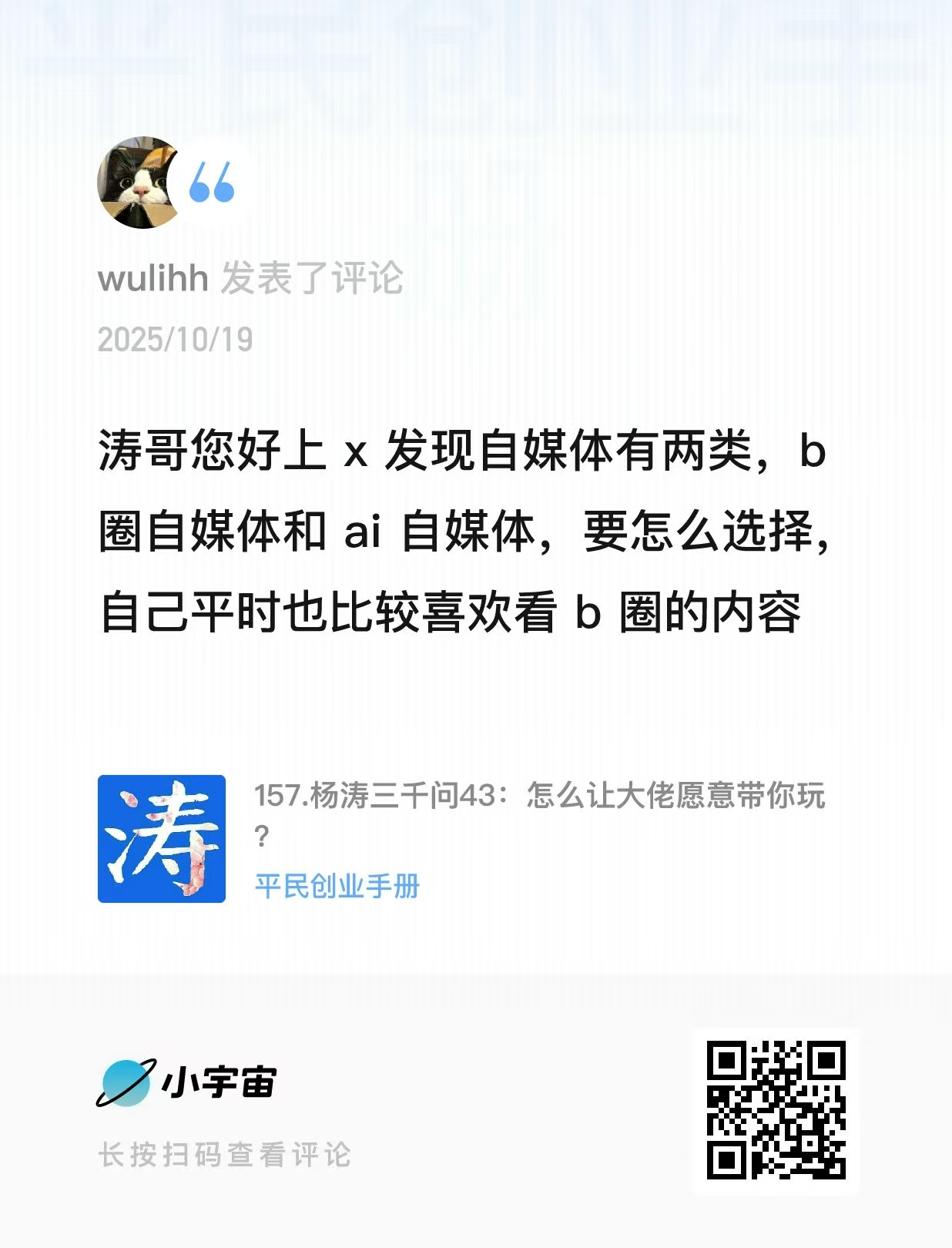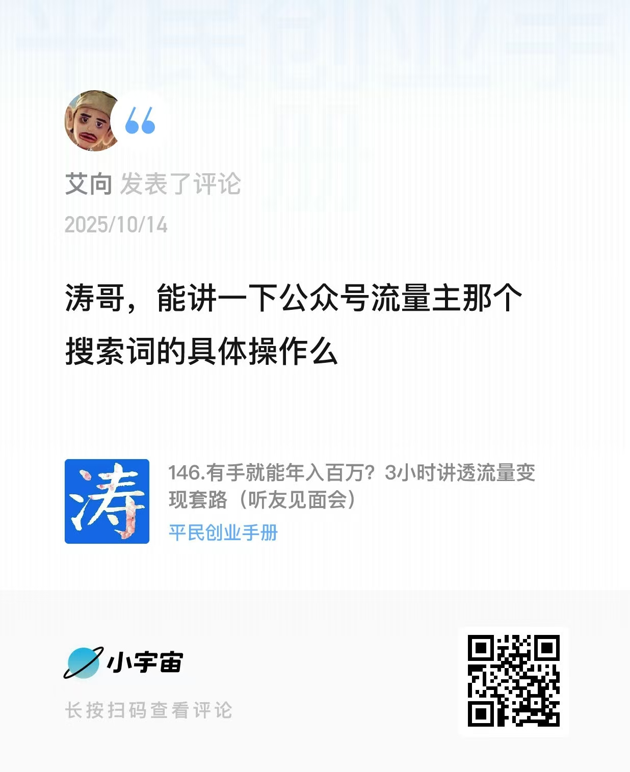 我的微信:xuejieyou6,欢迎撩我,我在「屋里涛说」等你,来星球《平民创业手册》有问必答,