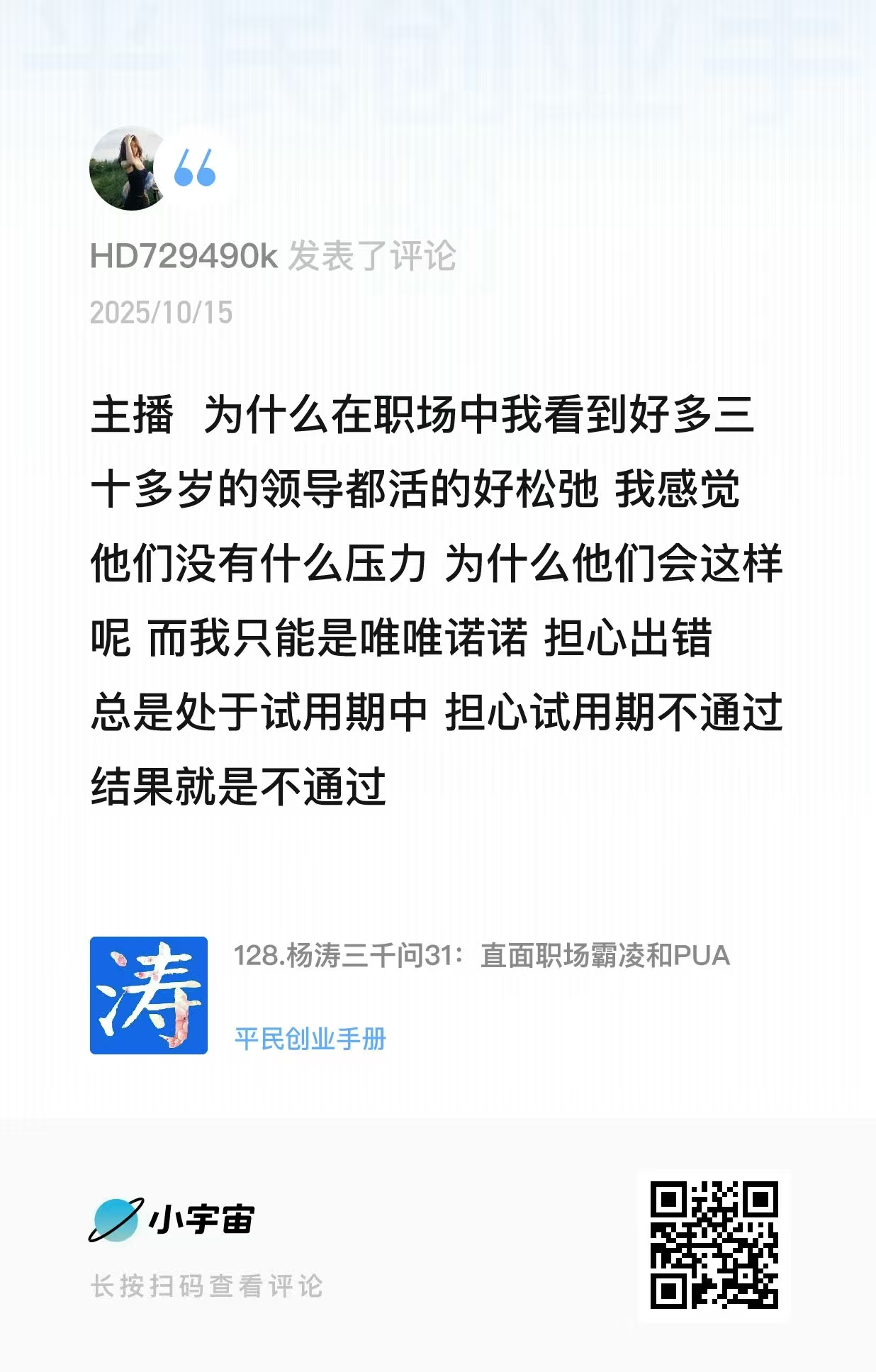 - 10:05 Q3:为什么30岁领导活得松弛,而我总担心出错?