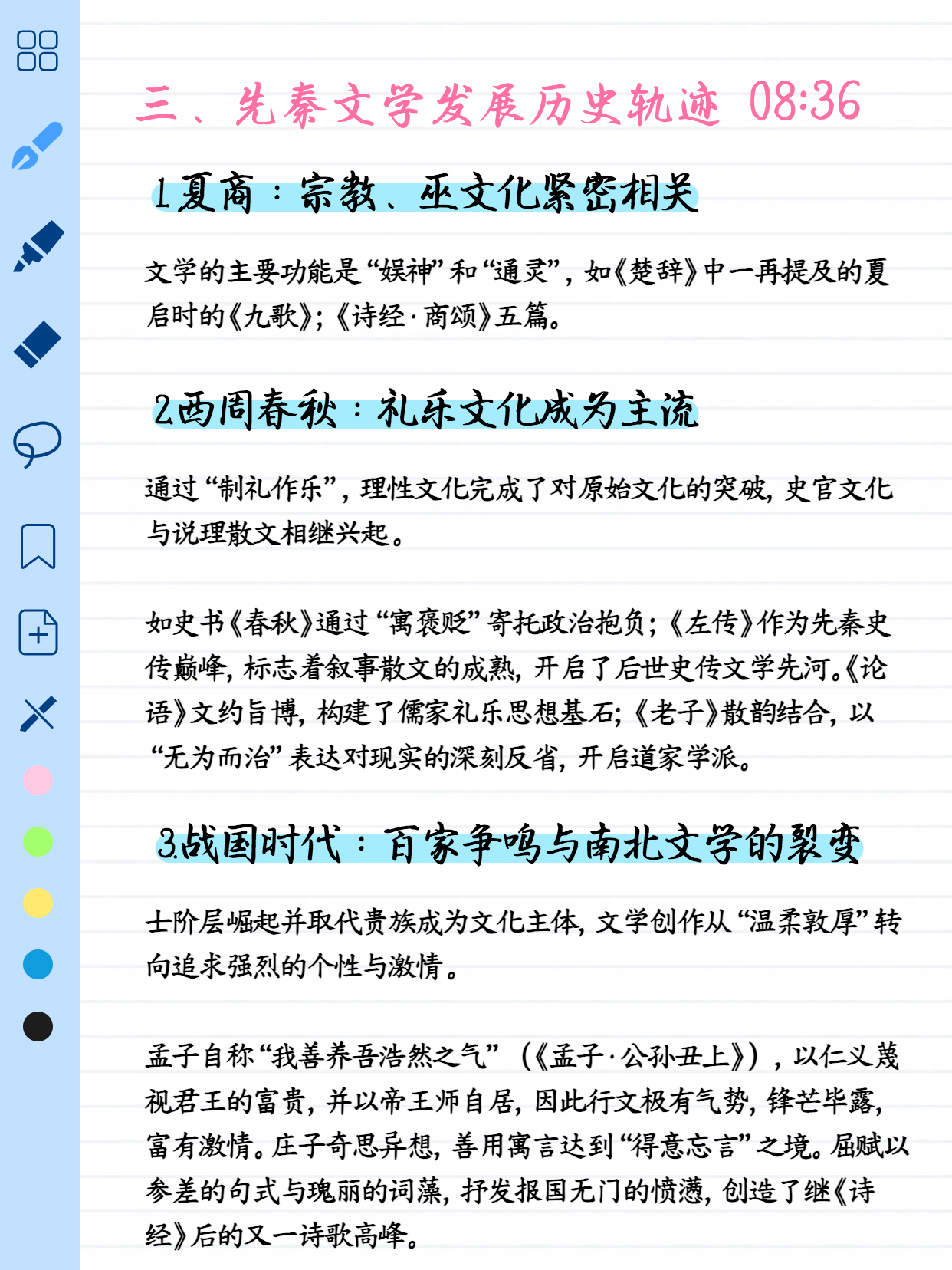 这期我们将略过源头的细碎传说,重点聚焦在先秦文学的发展轨迹与思想争鸣这两大部分。