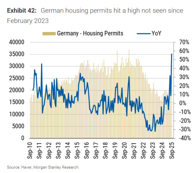 而轻资产的机会,藏在 residential 市场的复苏里(Exhibit 42:German housing permits hit a high not seen since February 2023,研报第19页)。