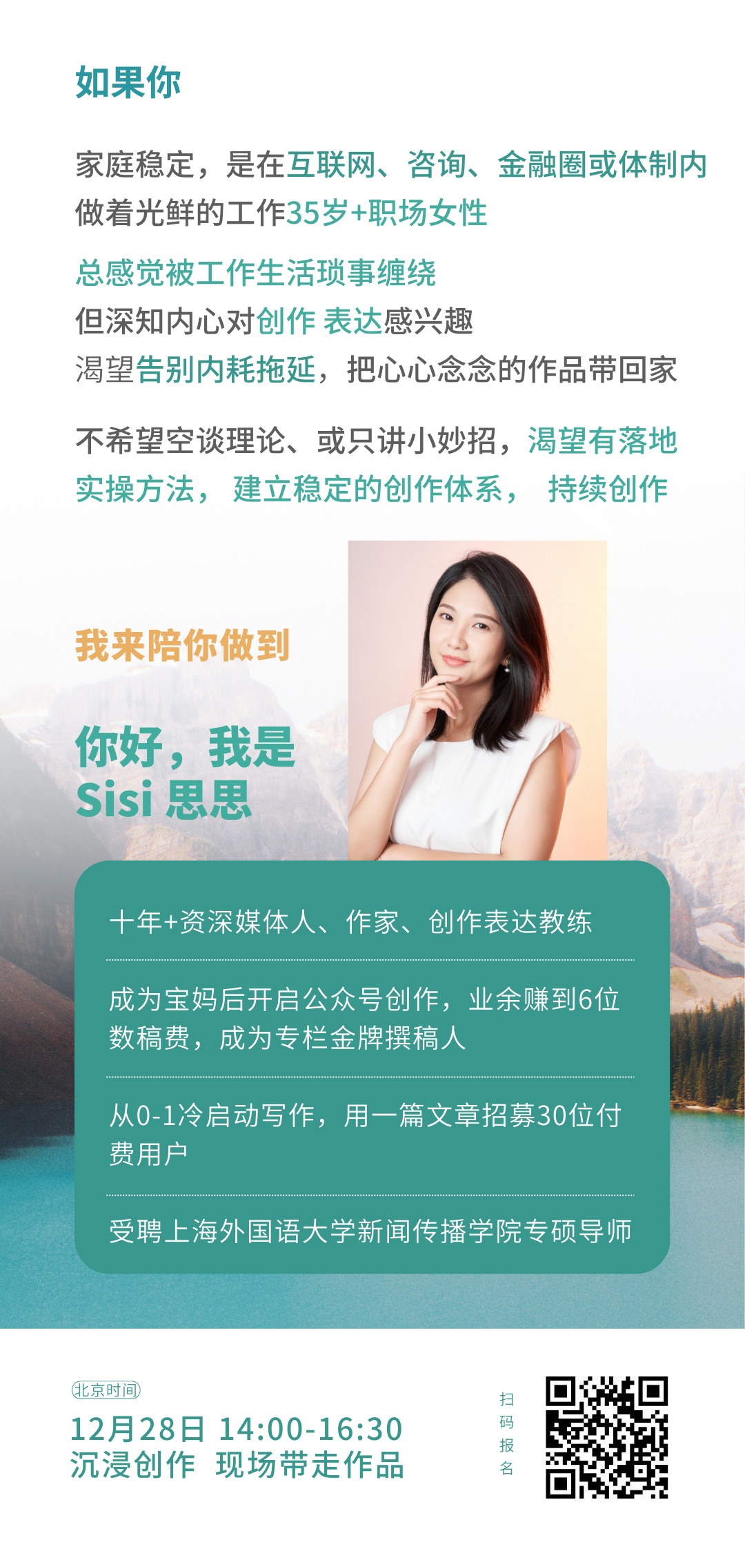 对思思在播客中提到的工作坊感兴趣的伙伴们,欢迎扫码报名