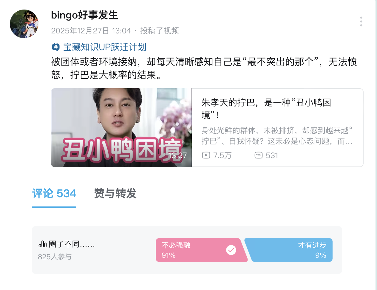 真正折磨人的,往往不是被排挤,而是被对照。你被允许留下,却每天都清楚自己是“最不突出的那个”。这种无声的痛苦,会让人变得防御、攻击,甚至阴阳怪气——这其实是一种绝望的自救。