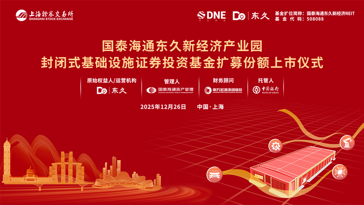 国泰海通东久新经济REIT由东久工业地产投资有限公司作为发起人、国泰海通资管作为基金管理人及计划管理人,2022年10月14日在上交所上市,为全国首批标准厂房基础设施公募REITs之一。首发资产覆盖上海、苏州、无锡、常州。本次扩募募集规模约4.272亿元,扩募新购入的东久(南通)智造园、东久(重庆)智造园一期总建筑面积约10.02万平方米,均为较为单层标准厂房资产,租户固定资产投资和迁移成本整体较高,租户粘性较强。(来源:12月26日上证路演直播)