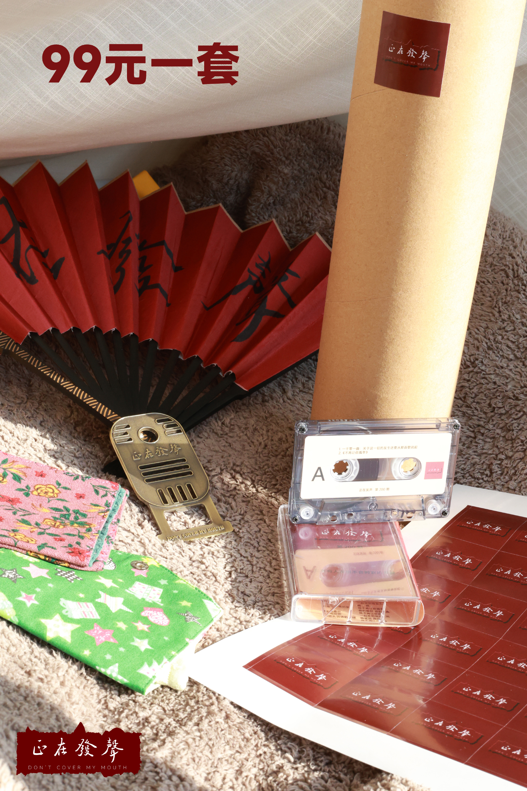 一盒磁带+一把折扇+一个冰箱贴+一张贴纸+一块茶巾+一个口罩包=200期特别礼包