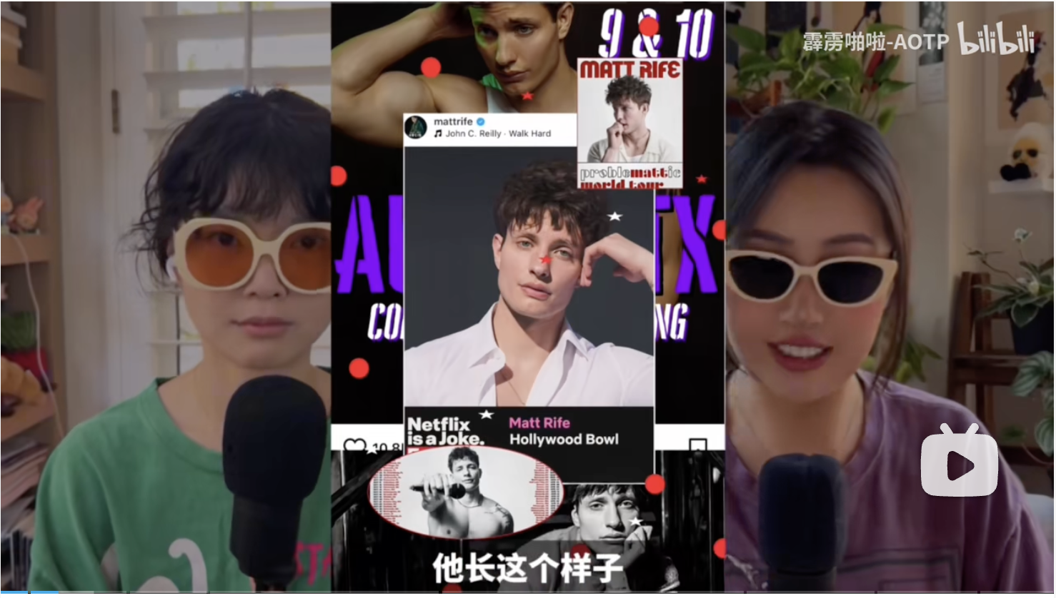如果你愿意来看看我们的视频频道,会看到一些音频里看不到的部分:我们认真思考时的眉心11字纹、突然被逗笑时的两排牙齿😂也能和我们一起直接对着原始素材分析 – 比如这一期里 Matt Rife 的脱口秀和采访片段(是的,我们很用心地做了中英双语🦚),还有罗永浩的争议发言截图和网友的实时评论。在弹幕和评论区里,很多讨论都是边看边发生的。