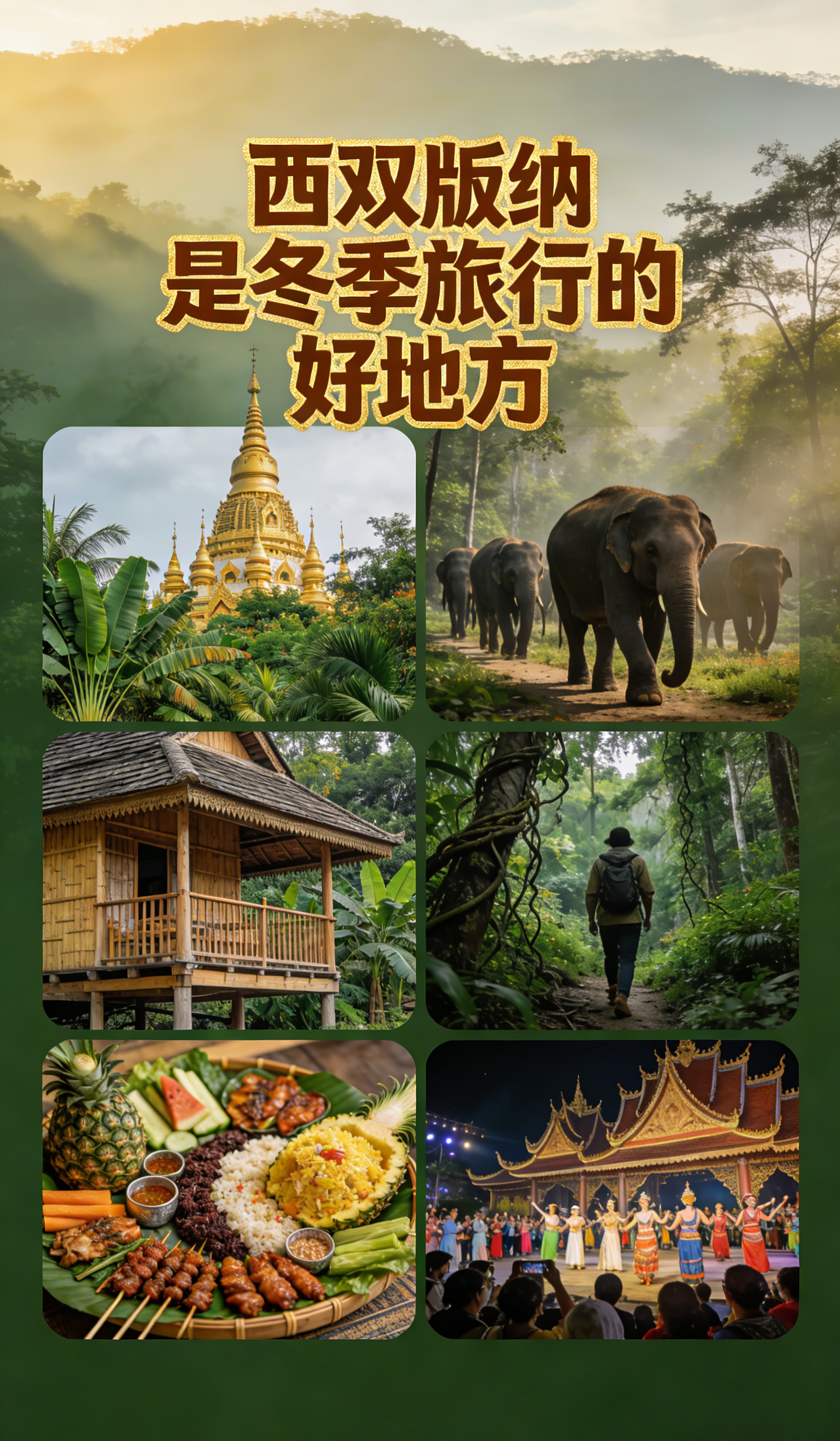 主要介绍了西双版纳作为冬季热门旅行目的地的独特魅力。首先,西双版纳的冬季气候温暖,温度在18到28度之间,晴天多,空气不潮不燥,非常适合户外活动和康养旅居。其次,西双版纳的森林覆盖率高,负氧离子浓度高,被称为中国天然氧吧,适合有呼吸系统疾病或老年人来此康养。此外,西双版纳的民族风情和特色活动丰富,如傣历新年、水灯节等,以及热带雨林探秘、非遗表演等文化体验。与三亚相比,西双版纳的物价更低,政策保障也更完善,如医疗条件提升、异地医保直接结算等。最后,西双版纳的交通便捷,生活氛围融洽,成为越来越多人冬季避寒养老和休闲度假的首选。