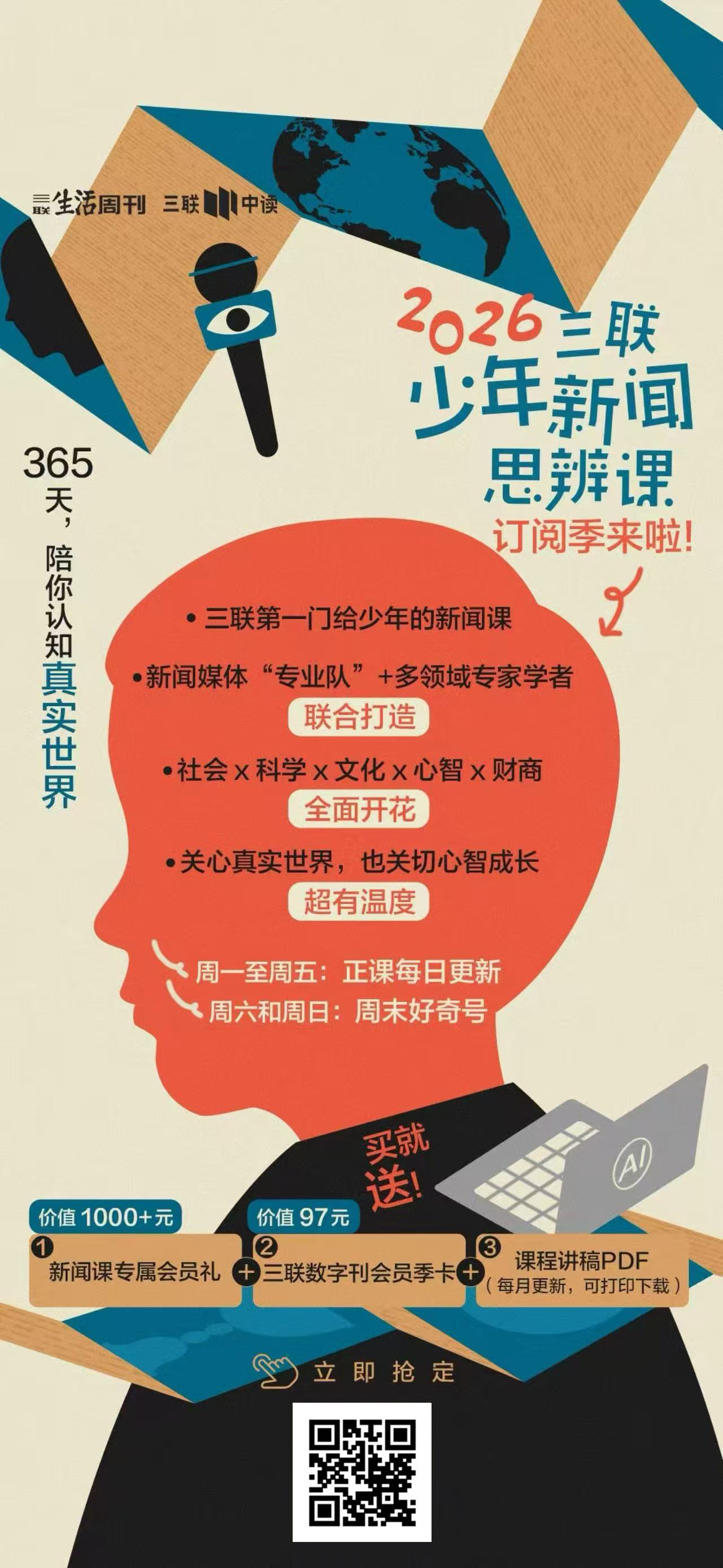 由三联主编和记者天团为9-15岁少年打造,每天15分钟,通过真实新闻事件培养孩子的提问能力、分析能力和独立判断力。不灌输答案,而是教会思考方法。
