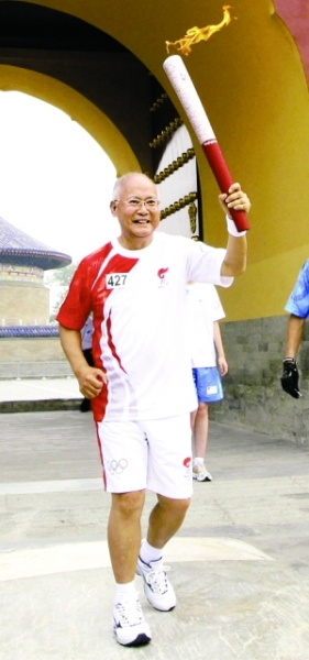 ▲ 2008年,何振梁参加北京奥运火炬传递活动
