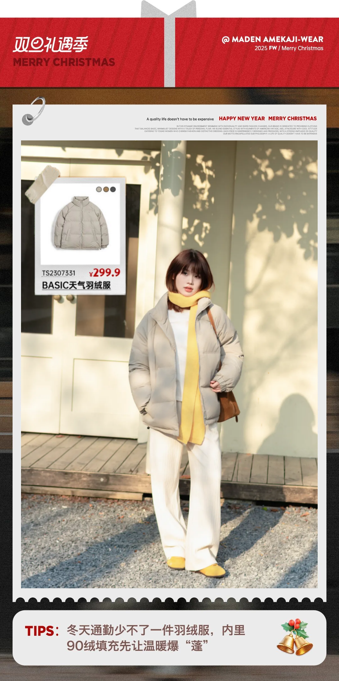 简约基础款羽绒服+基础款打底+休闲裤,这套搭配中亮色点缀是灵魂!在冬天男生、女生都可以搭配亮色帽子和围巾出作为小穿搭技巧,大大丰富了穿搭的细节感和活泼感!休闲裤+休闲鞋,不仅显腿特别长,还让整体穿搭呈现时髦的美式氛围!