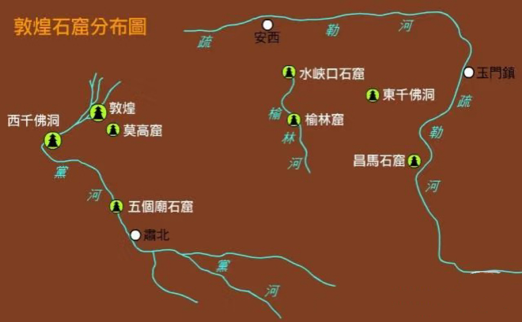 敦煌石窟分布图:
