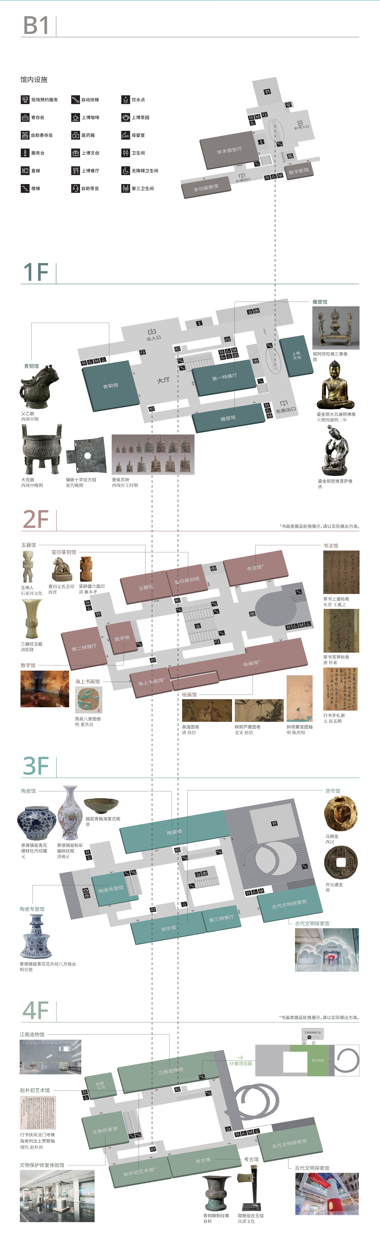 上海博物馆展厅分布及楼层导览图(图源:上海博物馆官网)