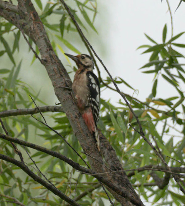 大斑啄木鸟 (英文名:Great Spotted Woodpecker,学名:Dendrocopos major),是䴕形目啄木鸟科啄木鸟属的鸟类。又名: 赤鴷、臭奔得儿木(谁叫你闻的)、花奔得儿木、花啄木、白花啄木鸟、啄木冠、叼木冠,最显著的特征是雄鸟枕部具狭窄红色,雌雄臀部均为红色。作为留鸟,广泛分布于欧亚大陆,包括山地和平原的针叶林、针阔叶混交林和阔叶林,尤其偏爱混交林和阔叶林,也可见于林缘次生林、农田地边疏林及灌丛地带。