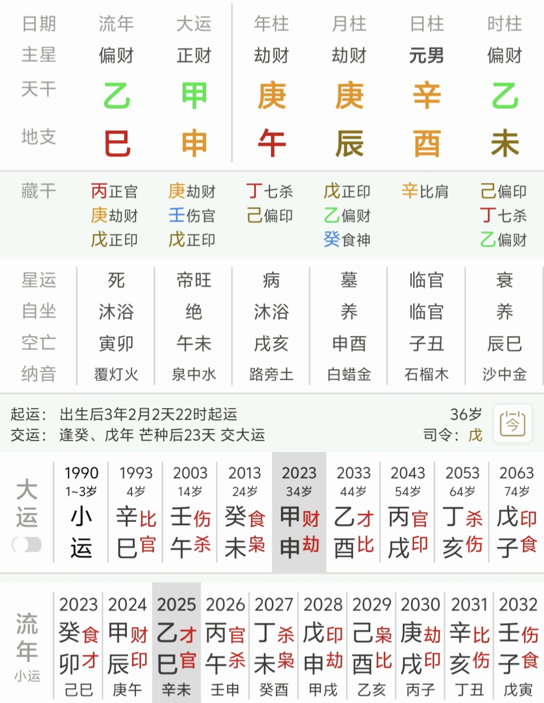 – 2025乙巳:乙财到位,引动酉日主动克财⇨收入仍可。