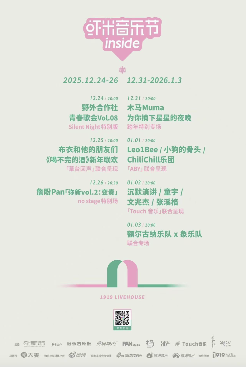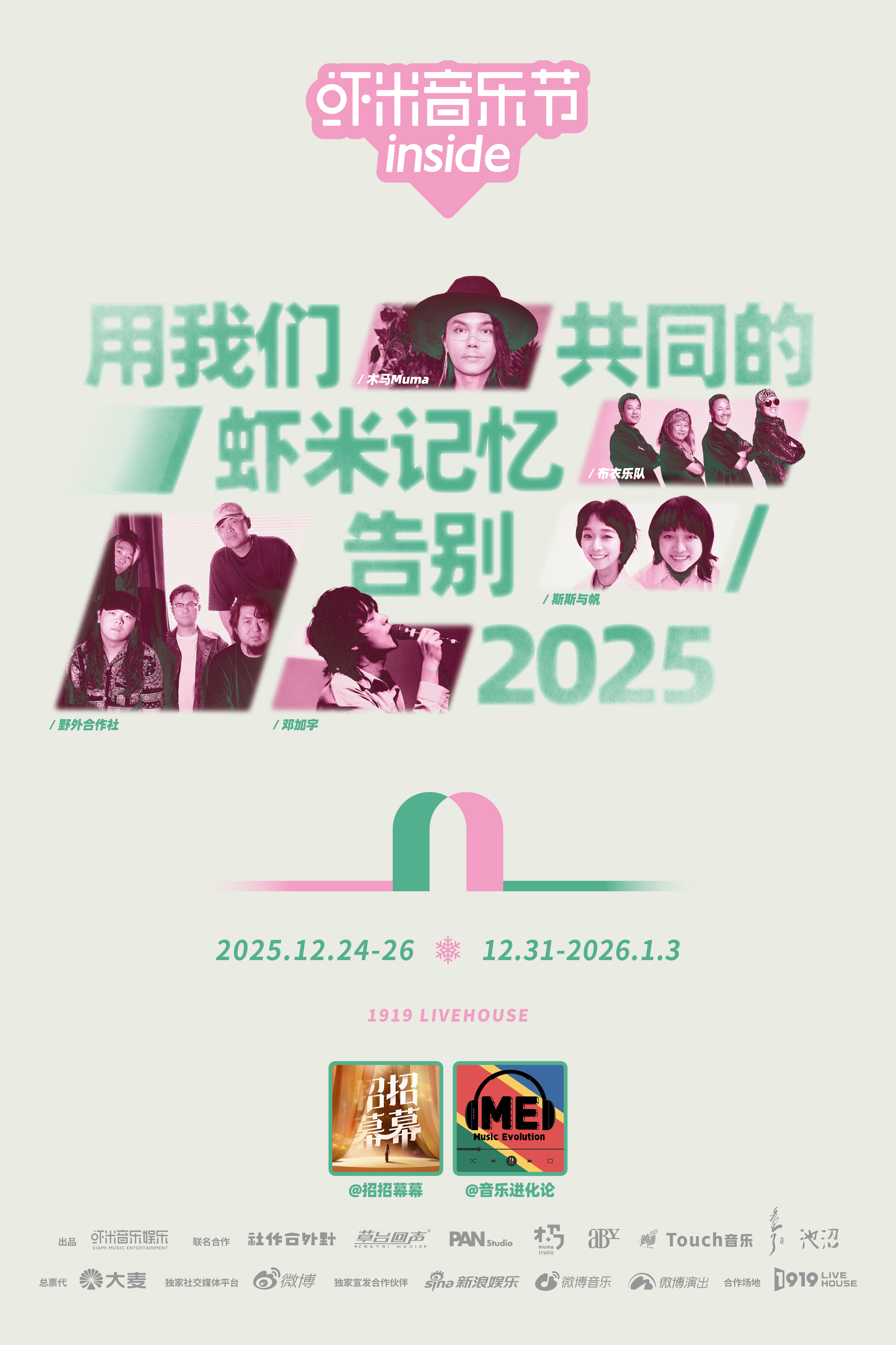 今年夏天,我们曾通过声音漫游 阿那亚海边的虾米音乐节 ,当季节进入秋冬,虾米又将音乐搬进室内,乐迷彼此靠近,在暖意中共享节日氛围。近期,虾米会在北京「1919Livehouse」连续举办7天的跨年演出,详见>>>「2025–2026 跨年企划」<<<