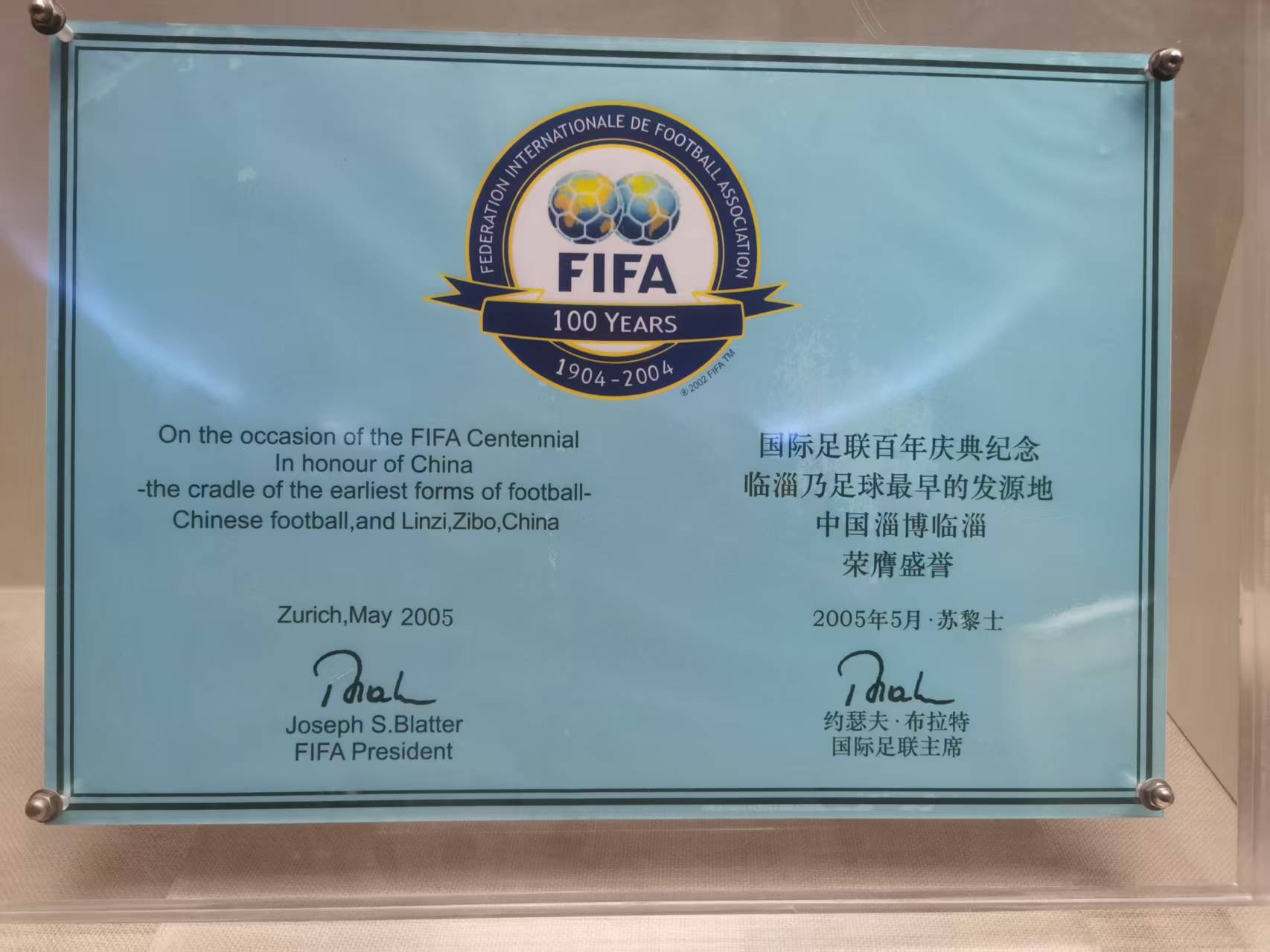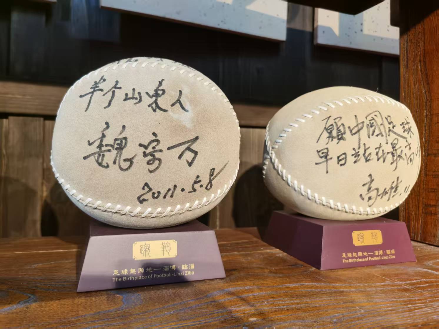 淄博足球博物馆:足球起源于春秋战国时期的齐国临淄(今淄博),博物馆有国际足联证书证明。售卖蹴鞠的商店有魏宗万老师 2011 年签名蹴鞠,魏老师曾饰演《水浒传》里的高俅。