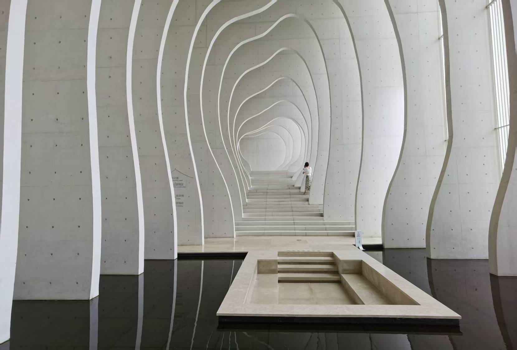 建筑风格独特:建筑以宣纸叠放为灵感,如千万张宣纸错落堆叠,阳光投下斑驳光影,演绎水墨江南韵味。其设计者俞孔坚参与过“水立方”设计,今年 9 月不幸因飞机失事遇难。