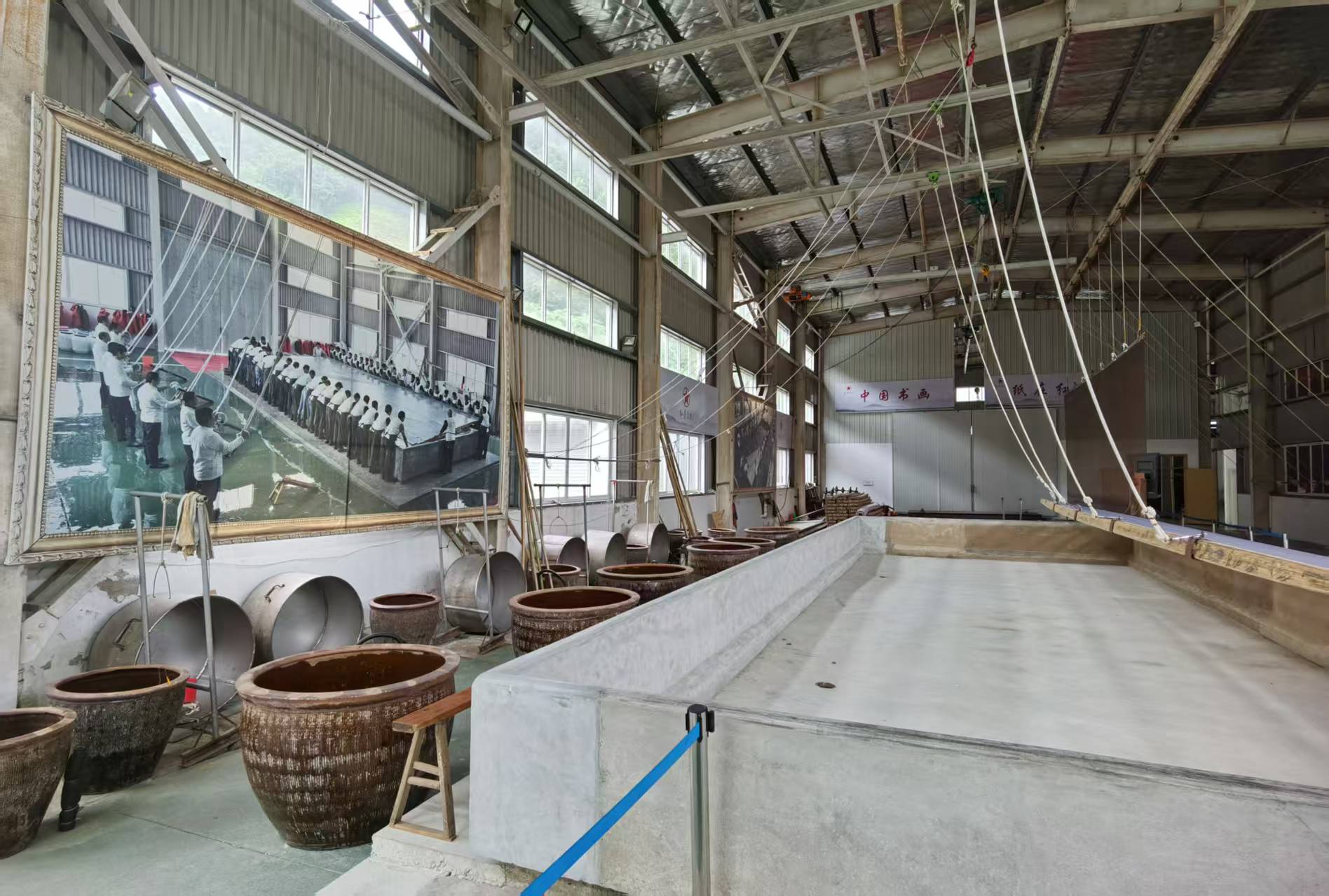 特色亮点造纸厂体验:展厅旁有以前的造纸厂,内有器械和巨大储放纸浆水池,可直观感受历史上最大尺寸宣纸的制作。