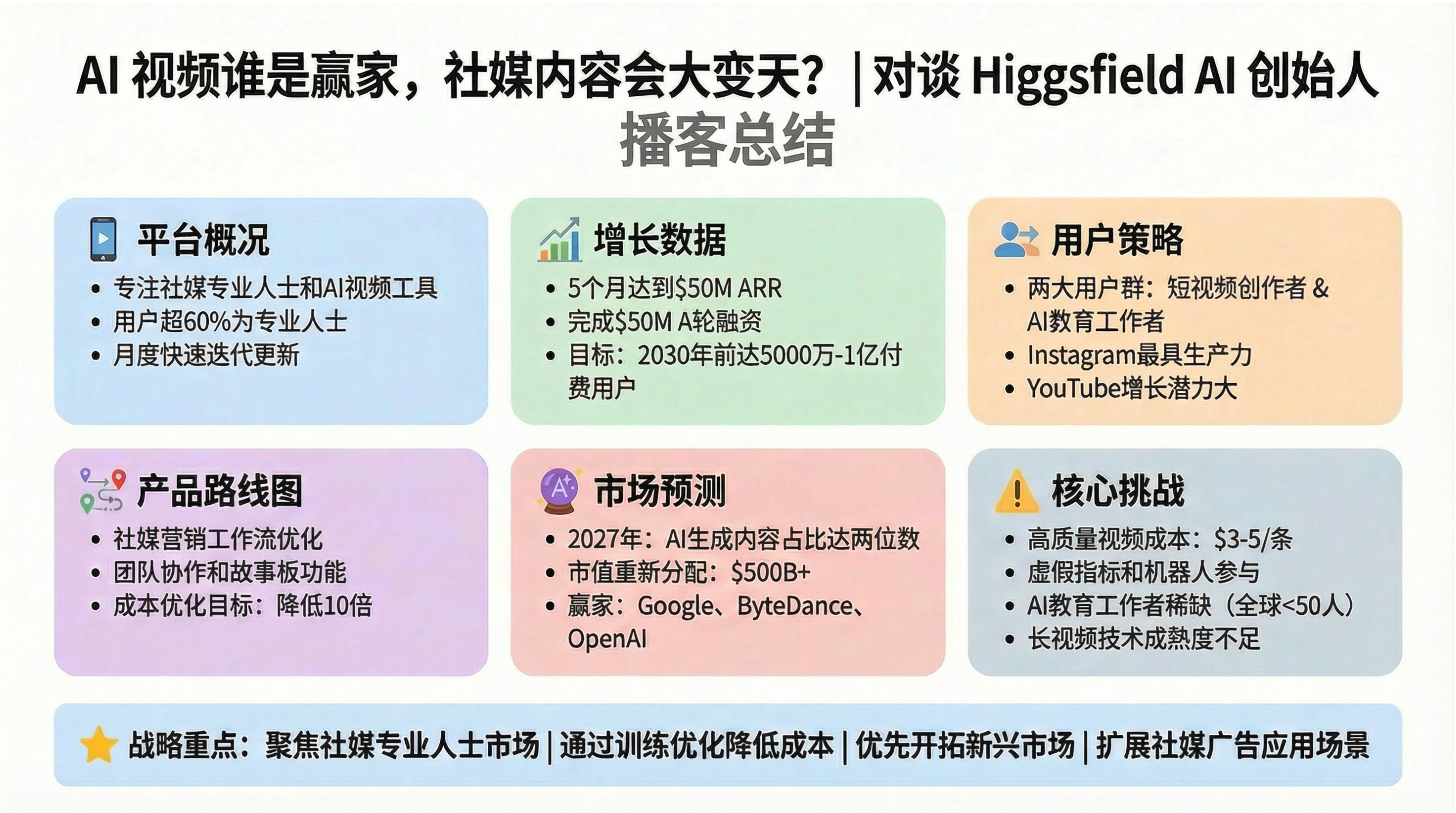 Alex 对社交媒体还有短视频的深刻理解给我们留下了深刻印象。他还对 AI 视频的发展和各大模型公司的前景做出了非常大胆的预测。