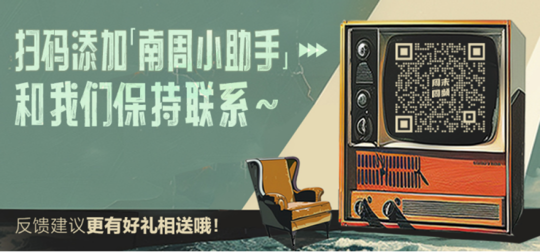 如你对本期节目有任何感想,或者对“周末同频”栏目和未来几期的节目主题有任何建议,欢迎扫描下方二维码,添加南周小助手微信进行反馈,或者直接通过“写评论”的方式提出。