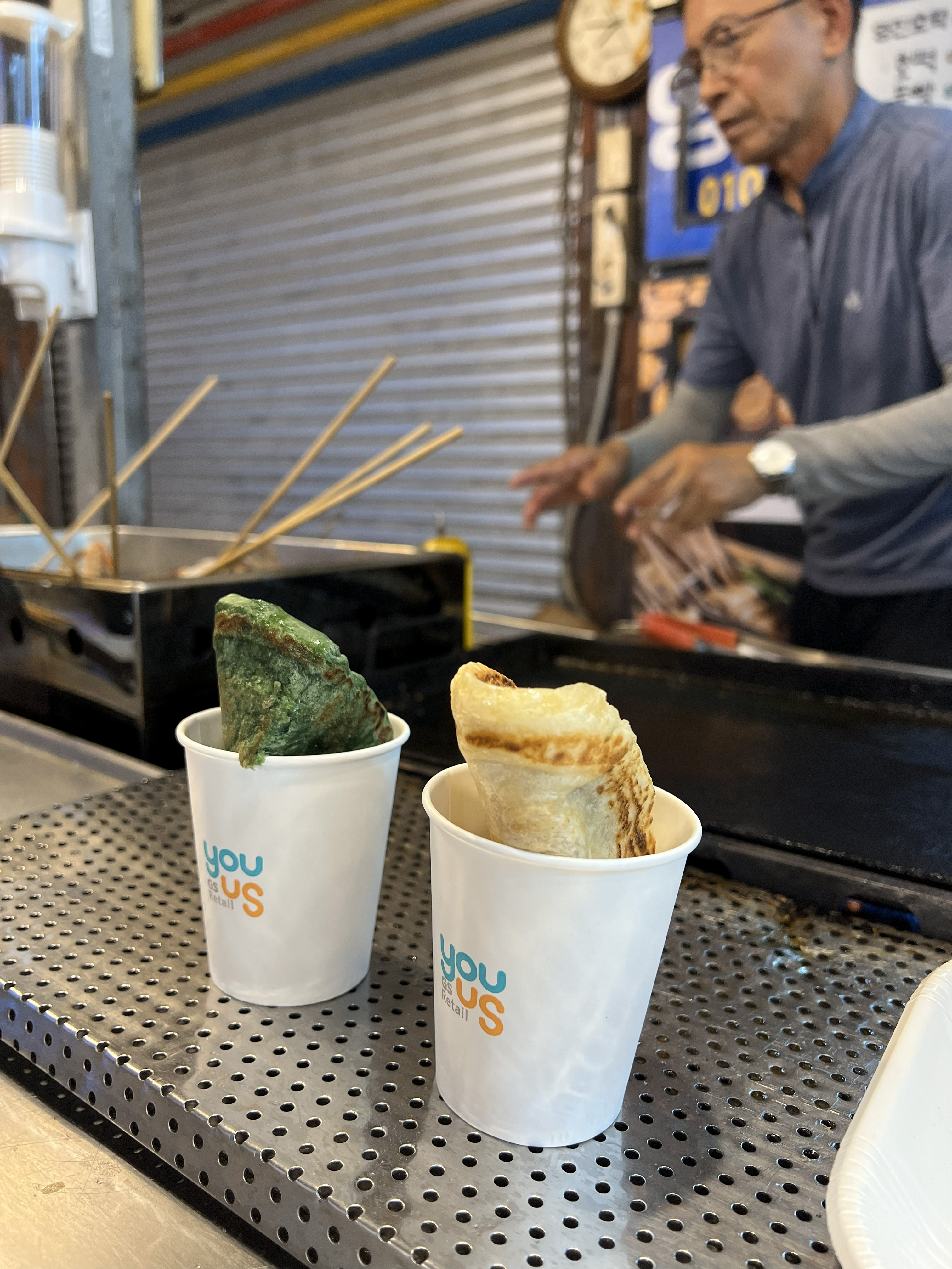 ▲西归浦偶来市场,老爷爷的糖饼,冲!