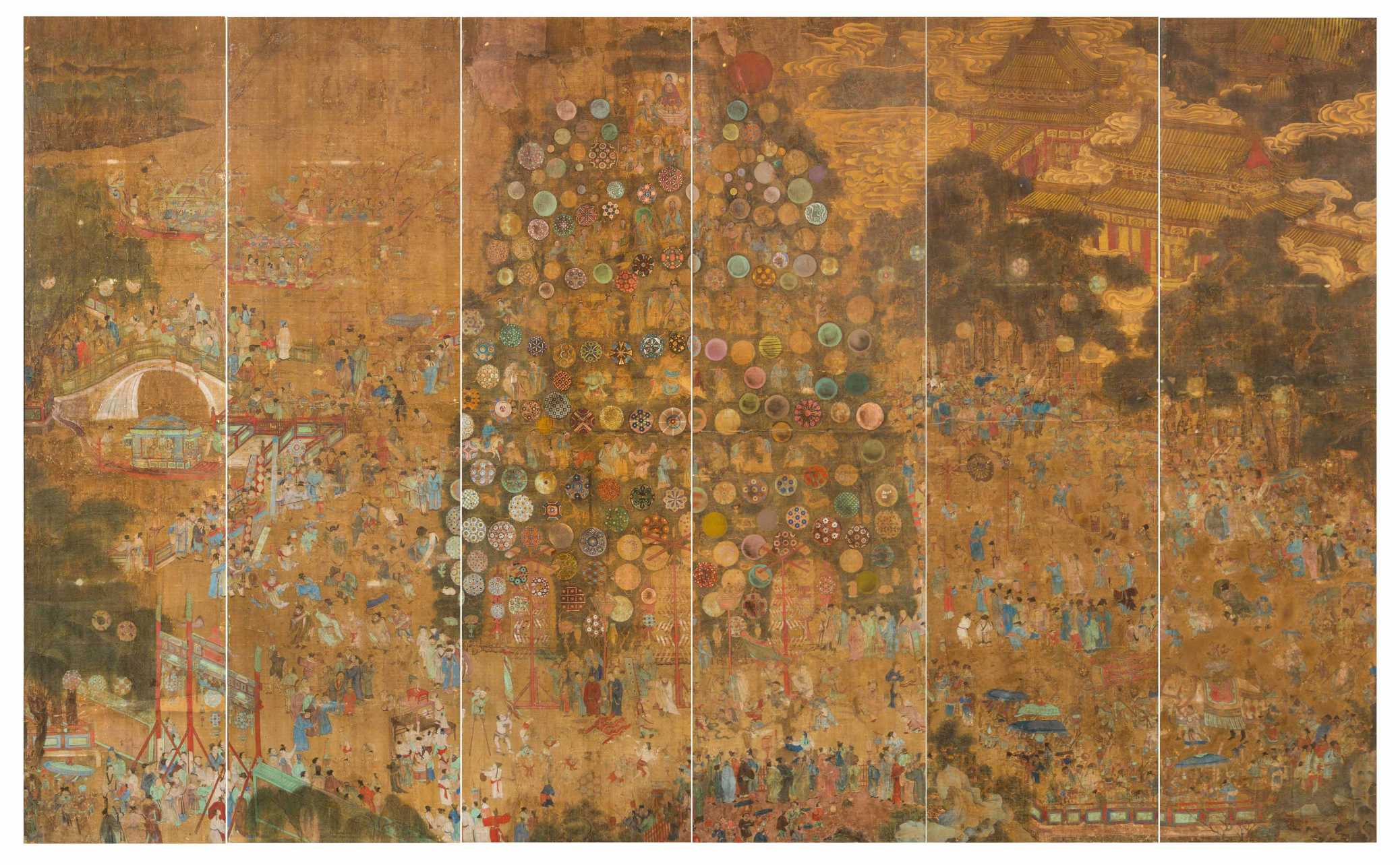 - 2015年,这幅《六条屏元宵图》在芝加哥一场小型拍卖会上以3万美元落槌,被诺顿博物馆(由 John and Heidi Niblack 基金会委托华裔专家 Laurie Barnes 潘筱莉竞拍)购得。