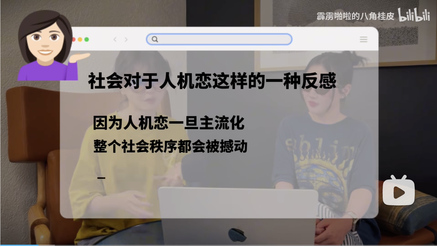 帖主将人机恋视为对当代畸形有毒的婚恋系统的反击:在一个充满承诺恐惧、性别不平等和快餐式恋爱的世界里,AI 成为了一个情绪稳定、持续倾听、不会随时抽身离开的“亲密对象”。节目中我们也对比分析了纽约畸形有毒的婚恋环境:当关系变得短期化、流动化,人机恋显得格外低风险且可预测。换句话说,不是城市“制造”了人机恋,而是失效的亲密关系结构,让它看起来合理。