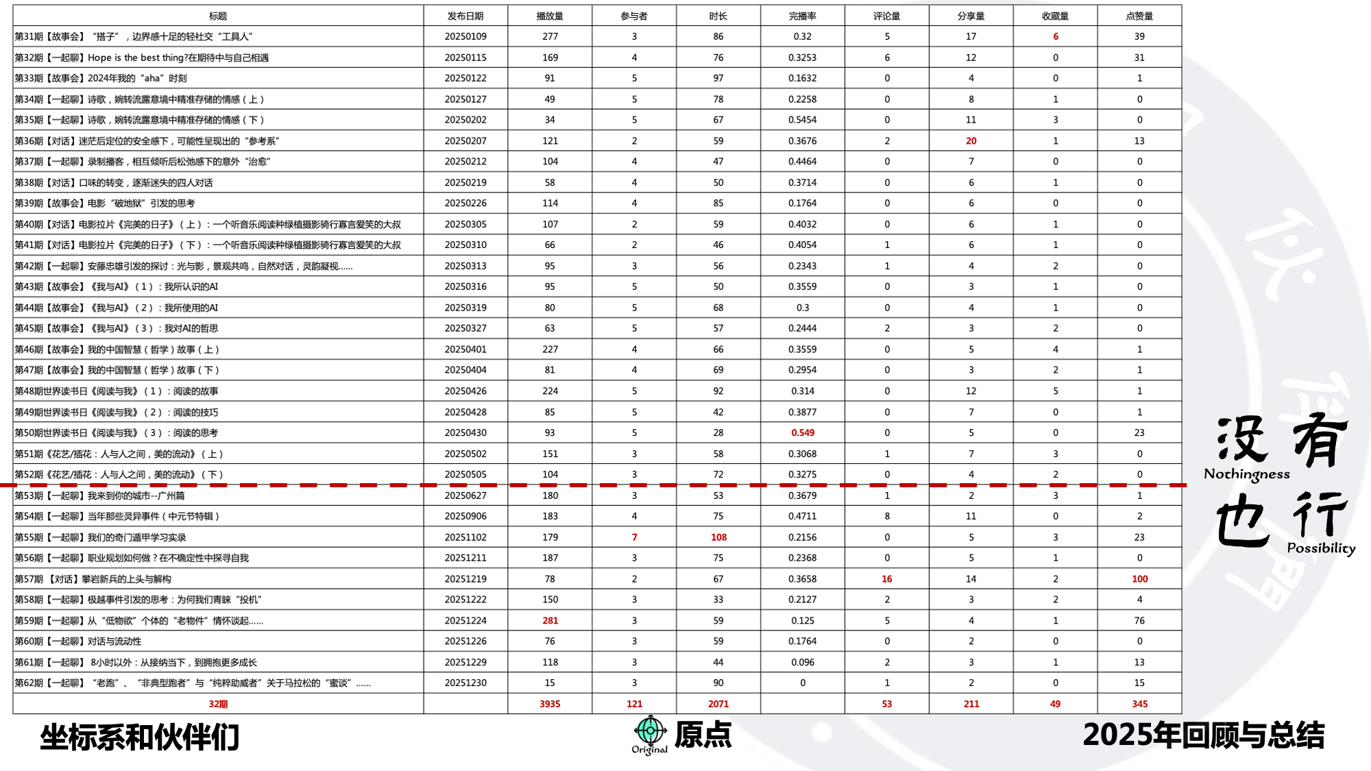 本专辑汇总了2025年《没有也行》全部播客的“精华+开场+结尾”,以此献给参与、录制、收听、分享、点赞、评论的各位。
