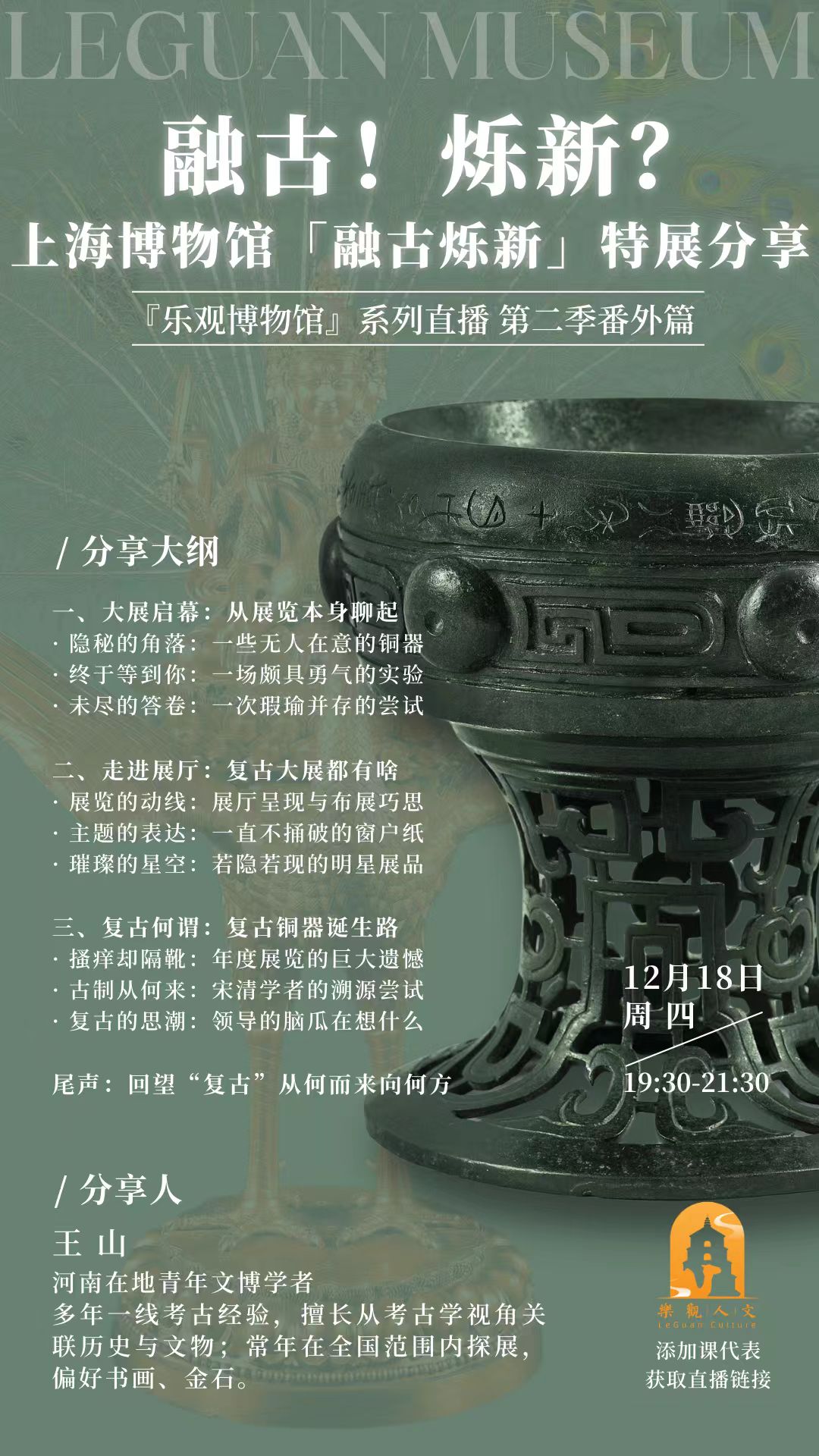 本期用94分钟时间,详解上海博物馆的青铜器馆,从二里头到明清,由7大发展阶段,看尽3500年的中国古代青铜文化史。为什么我们都爱青铜器?答案就在展厅里。