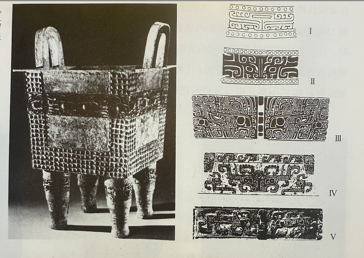 商代青铜鼎与青铜纹饰,图源:(德)罗越《安阳时期的青铜器风格》(The Bronze Styles of the Anyang Period)