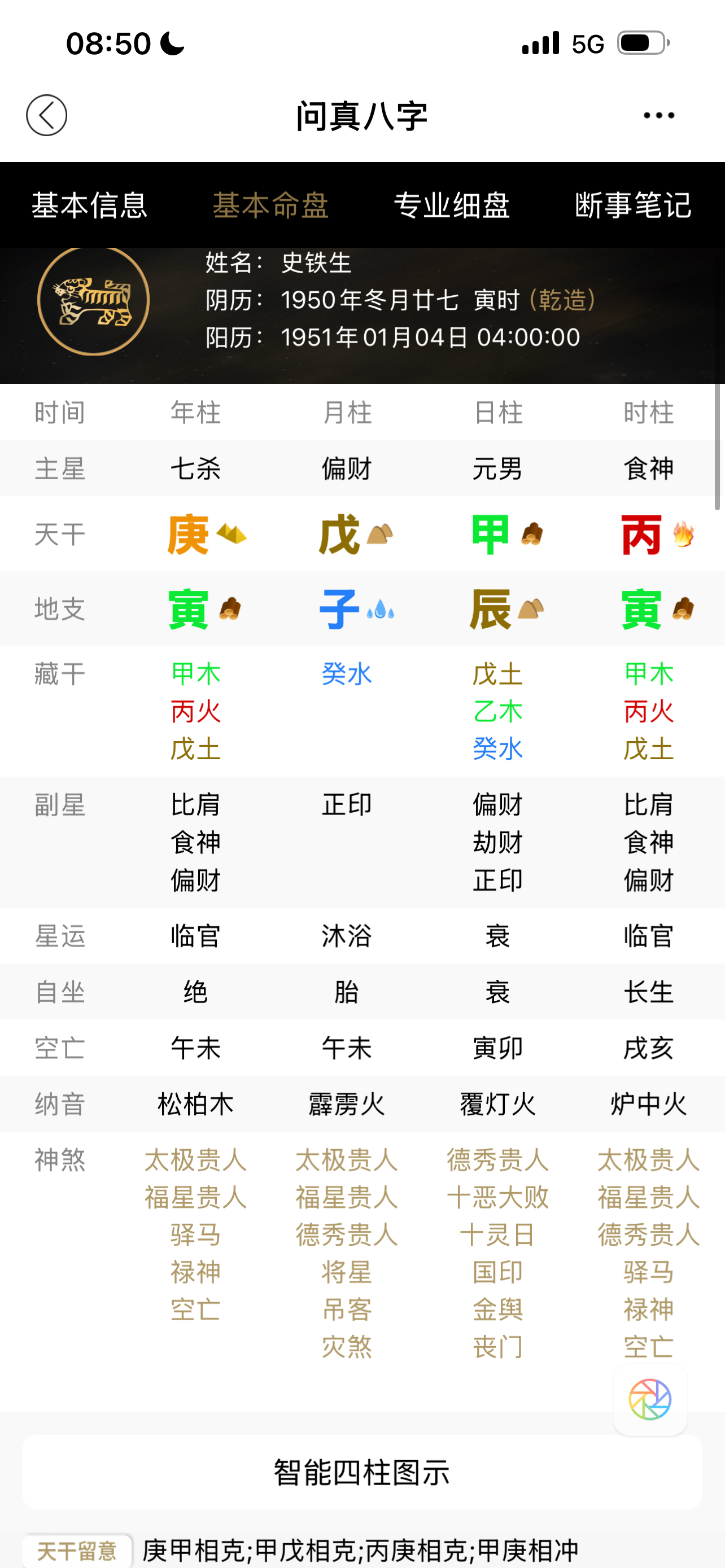05:30 史铁生八字定盘:庚寅 戊子 甲辰 丙寅