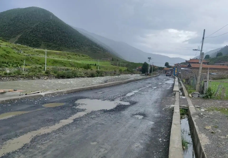 去冷噶措看雪山的烂路