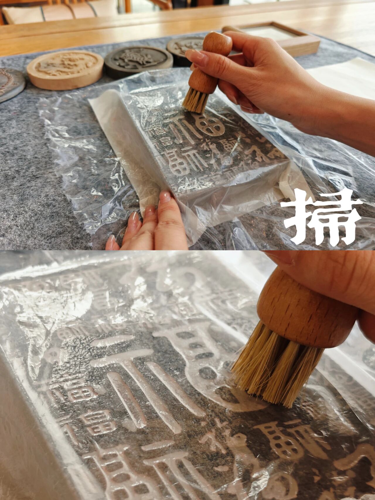 00:09:50 – 00:11:44 描述拓印课程从制作拓包到多材质拓印的进阶过程,强调“万物皆可拓”。 体现拓印的技艺深度与多样性,从工具到技法均有讲究。