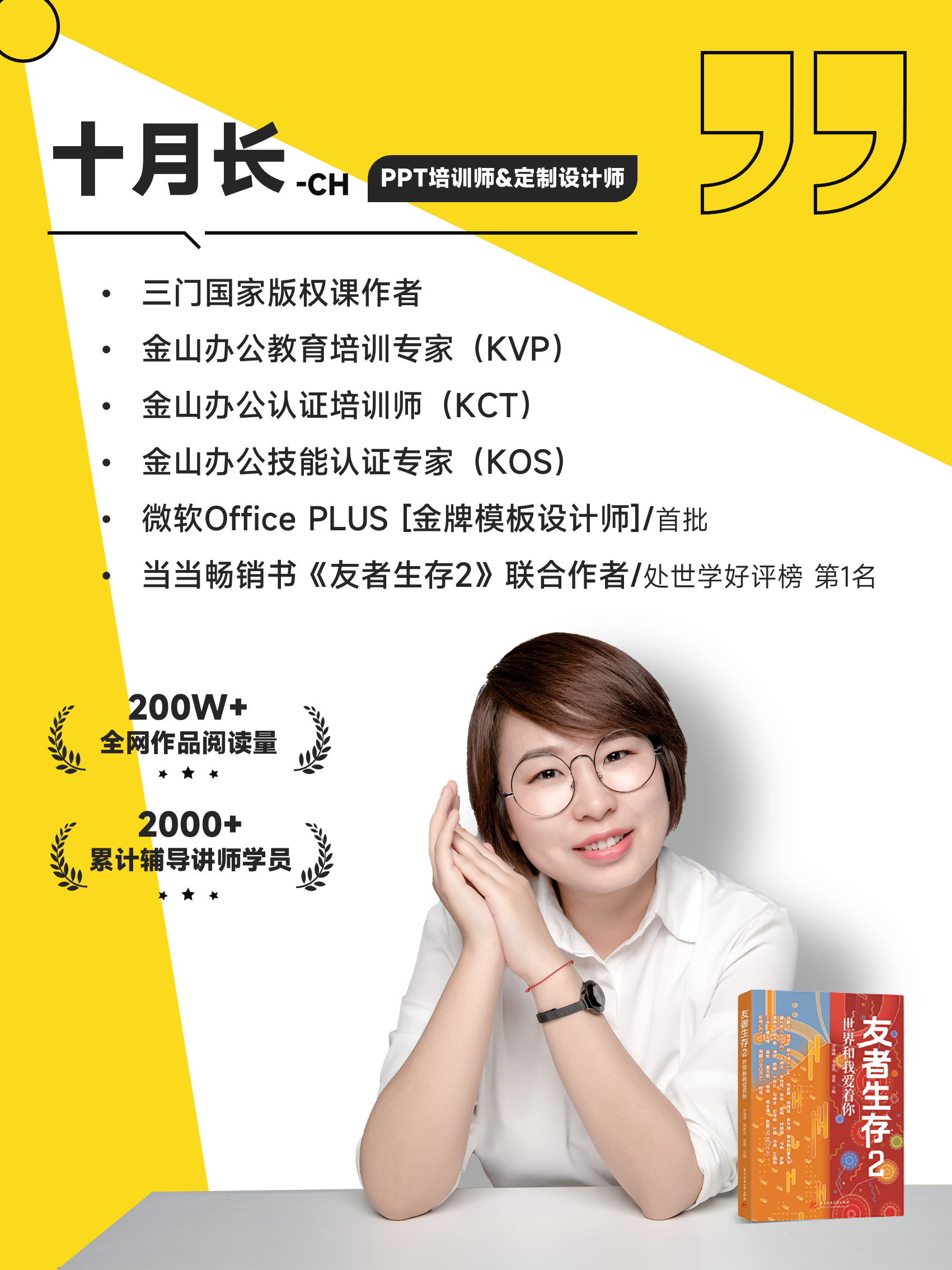 第一个嘉宾,也是跟我们合作非常密切的PPT培训师和定制设计师,她也是很多知识IP的御用视觉设计师,好作品会说话,十月长老师用PPT让大家的内容更出彩