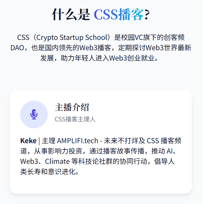 欢迎来到CSS,全称 Crypto Startup School(加密创业学校),是校园VC旗下的创客频道,也是国内领先的 Web3 播客。