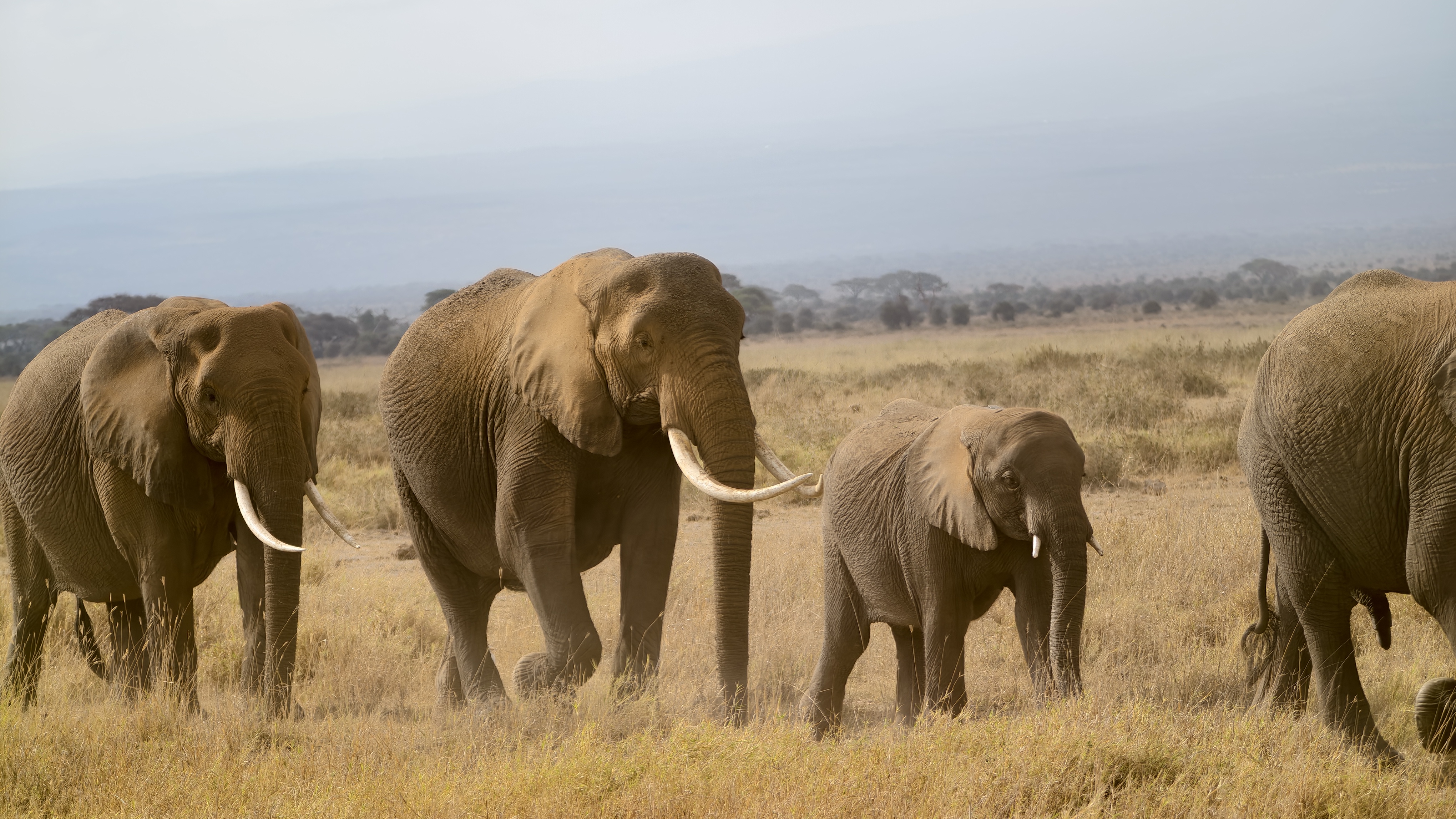 乞力马扎罗的雪山和象群: