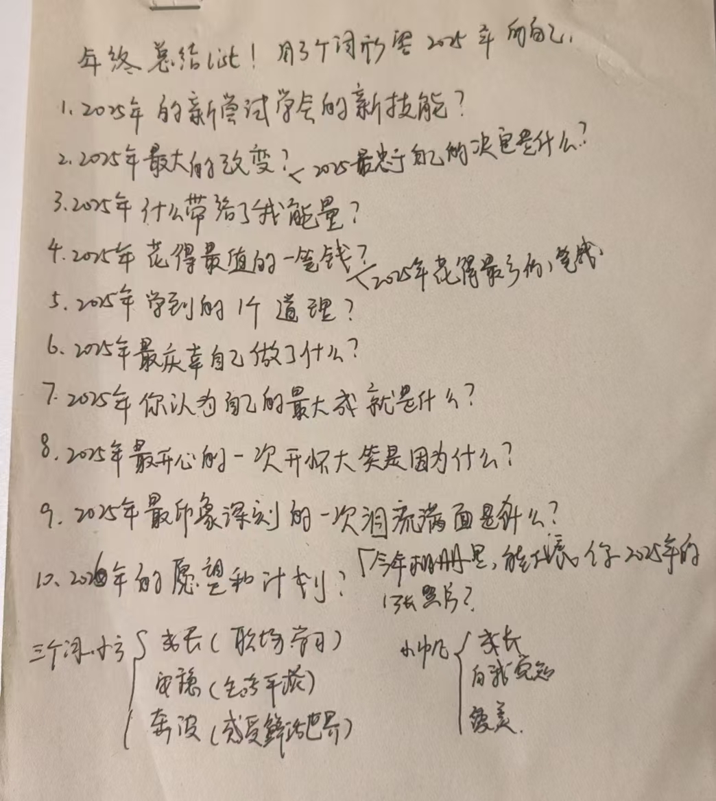 - 00:34 用三个词形容2025年的自己:成长、安稳、奔波 vs. 成长、自我觉知、爱美