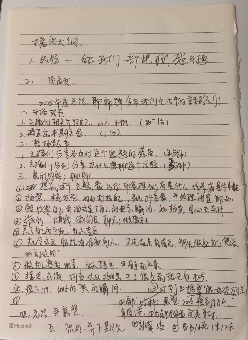 - 2026年的期待:小六的愿望务实——世界和平、涨工资、学做饭、提外语;小帆的计划更偏向状态——保持自我觉知、付出行动、坚持自己的主体性。