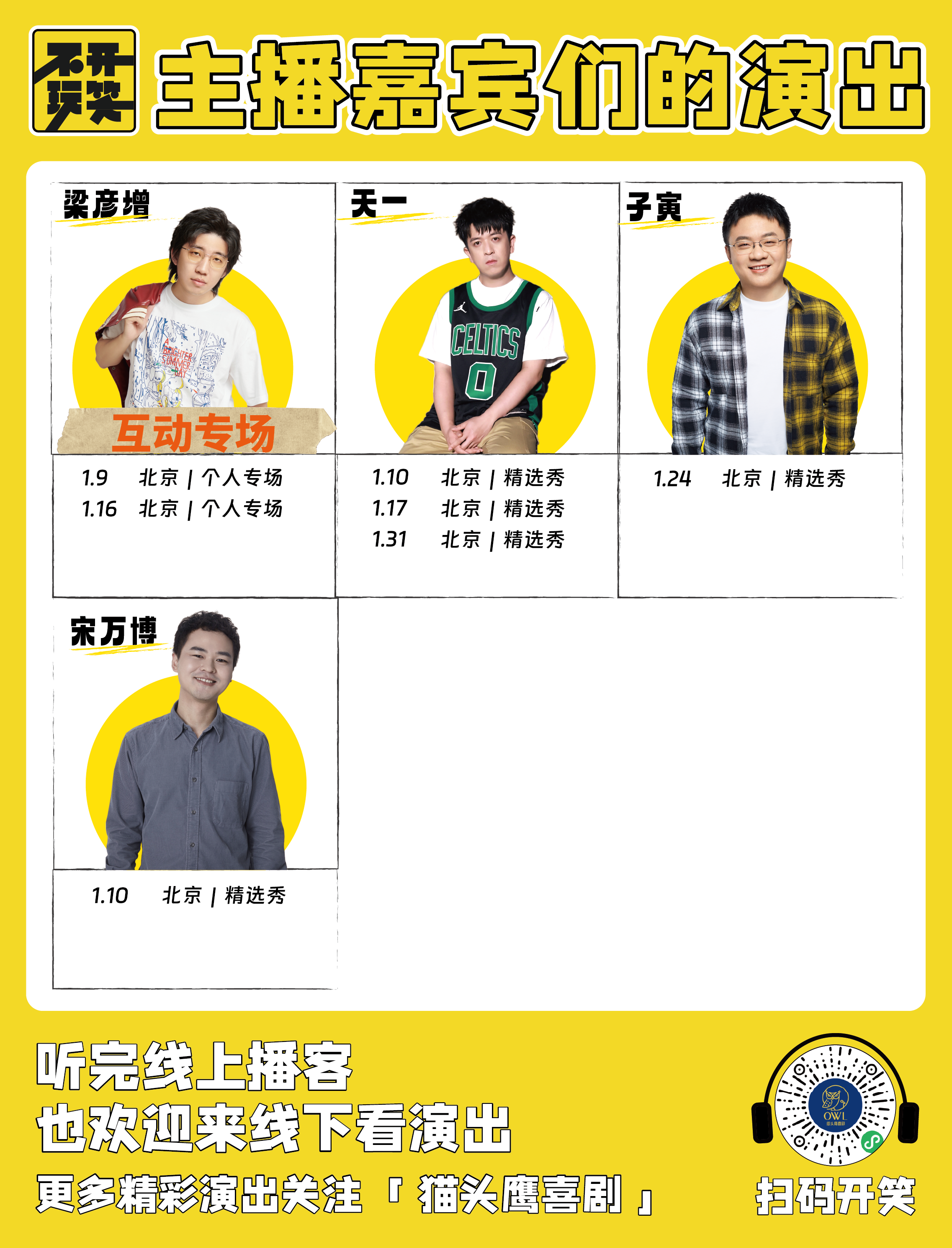 每周在北京还有我们的脱口秀演出,微信搜索小程序「猫头鹰喜剧」,线下脱口秀演出等你来~
